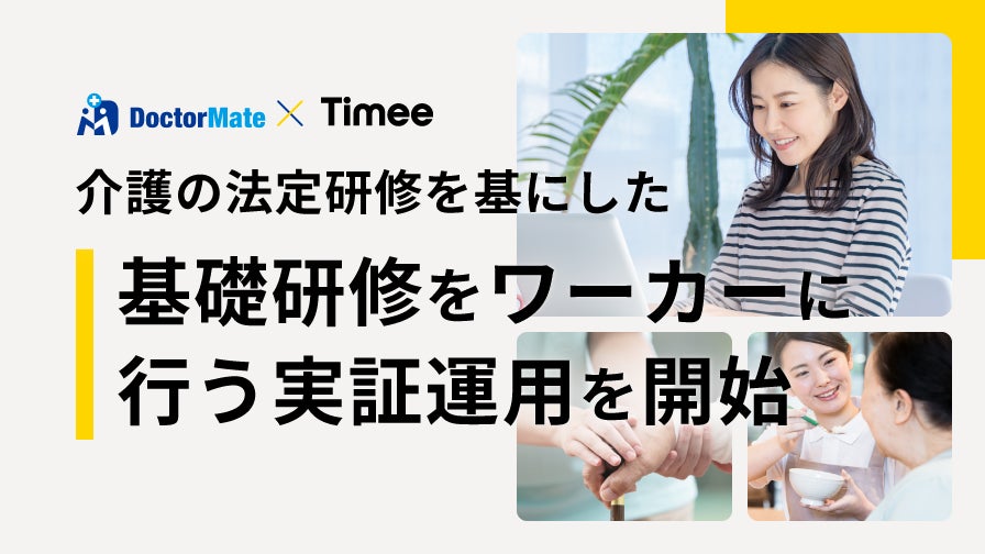 スキマバイトサービス「タイミー」を提供する株式会社タイミー(所在地:東京都港区、代表取締役:小川 嶺)は、この度、介護事業所向けに医療ソリューションを提供するドクターメイト株式会社(所在地:東京都中央区、代表取締役・医師 青柳 直樹)と連携し、介護の法定研修の内容を基にした、タイミーに登録している働き手に向けた基礎研修を実施する実証運用を2024年9月24日より開始することをお知らせします。
