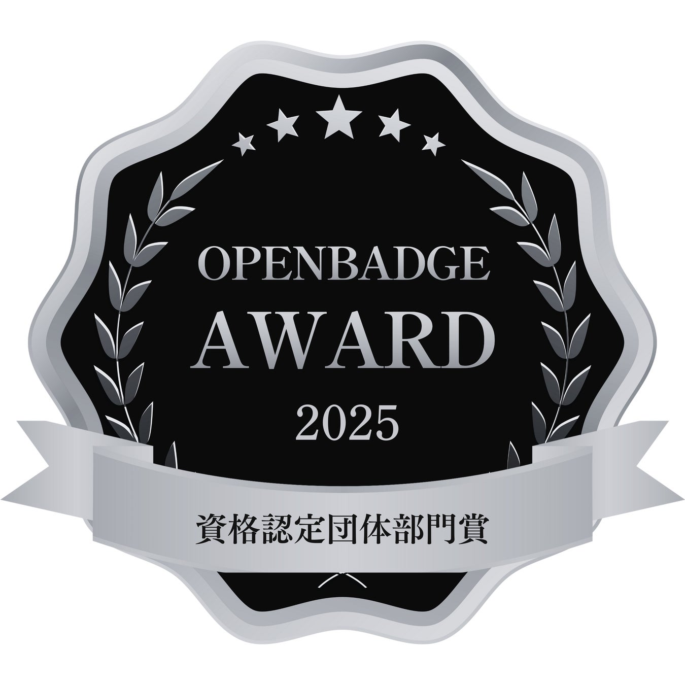 また、修了証としてオーソドックスでありながらも、企業認定制度としての信頼性や説得力を兼ね備えている点、会社名やブランドとのデザイン連携が明確である点も評価対象となりました。さらに、資格認定団体としての強い意思を持ってバッジ発行に取り組んでいることが、今回の受賞につながっています。審査委員会からは「今後さらに幅広いスキル領域において、オープンバッジ活用の緻密さや深さが進展していくことが期待される」との講評が寄せられています。
