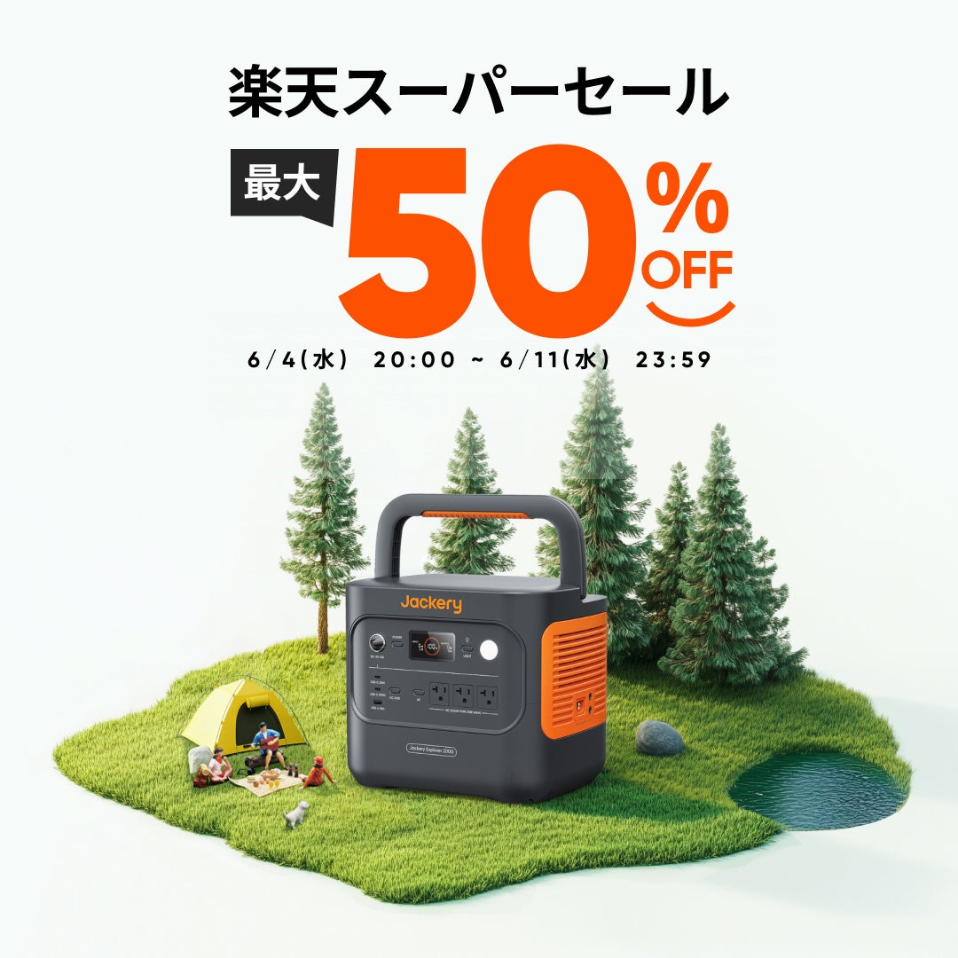 ポータブル電源およびソーラーパネルの世界的リーディングカンパニーJackery(ジャクリ)の日本法人である株式会社Jackery Japan(本社:東京都中央区)は、楽天スーパーSALEにおいて、ポータブル電源およびソーラーパネルを最大50%OFFで提供する特別セールを、6月4日(水)20:00から開催します。アウトドアから防災まで、多様なシーンに活用できるJackery製品を大変お得に手に入れるチャンスです。