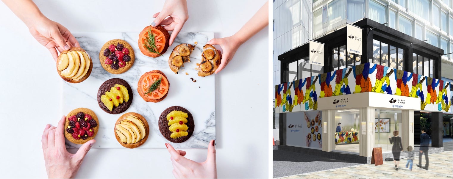 「クッキーのアトリエ」では、まるで”パレット”のように、二層の食感の異なる生地を重ね、フルーツ等のフレッシュな素材を組み合わせた「クッキーパレット」を販売します。一部商品はテイクアウトも可能で、春の穏やかな空の下でも食べることができます。