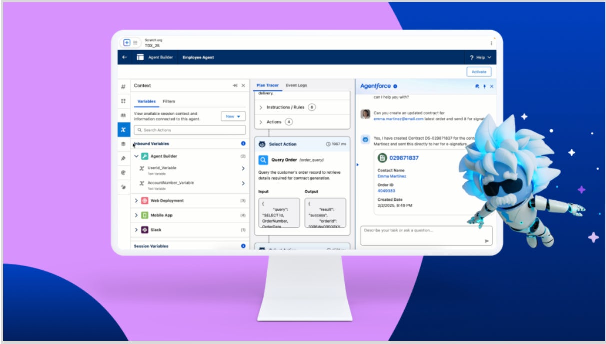 Agentforce API:新しいAgentforce APIにより、Agentforceをバックエンドのプロセスや他のシステムとアプリケーションに直接統合できます。例えば、ERPで発注処理が更新された際、AIエージェントを動的に実行したり、ローンの申請プロセスを自動化して、書類に必要な情報が記載されているかを確認したりすることができます。