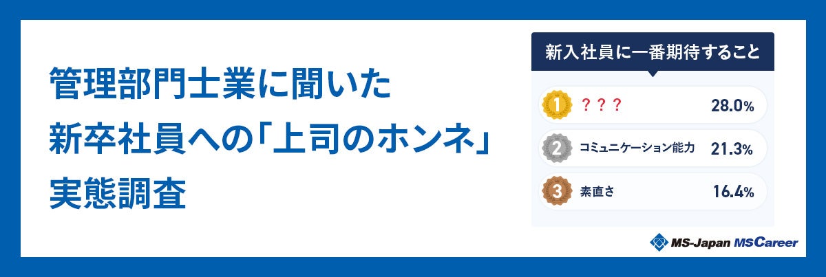 株式会社MS-Japan(本社:東京都千代田区 代表取締役会長兼社長CEO:有本隆浩/以下MS-Japan 証券コード:6539)が運営する、管理部門・士業の総合転職サービス「MS Career(エムエスキャリア)」は、『新卒社員への「上司のホンネ」実態調査』を発表しましたので、お知らせいたします。本調査は、管理部門・士業のためのビジネスメディア「Manegy(マネジー)」にて管理部門・士業人材289人に実施いたしました。