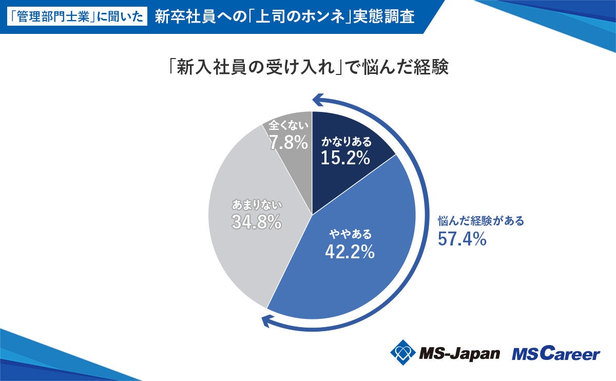 半数を超える57.4%の上司が、新卒の受け入れで悩んだ経験があることが明らかになりました。