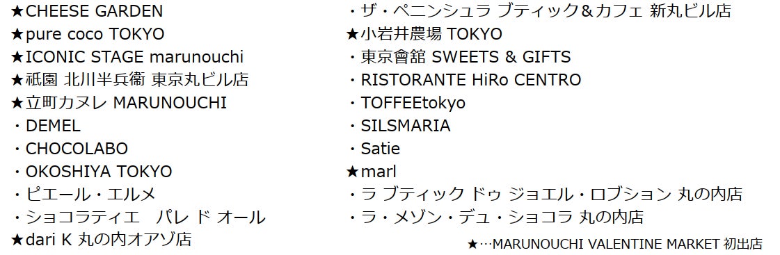丸の内エリアで絶大な人気を誇る名店から、初出店8店舗を含む選りすぐりの21店舗が登場!丸の内エリアが甘い香りに包まれる、とっておきのバレンタイン