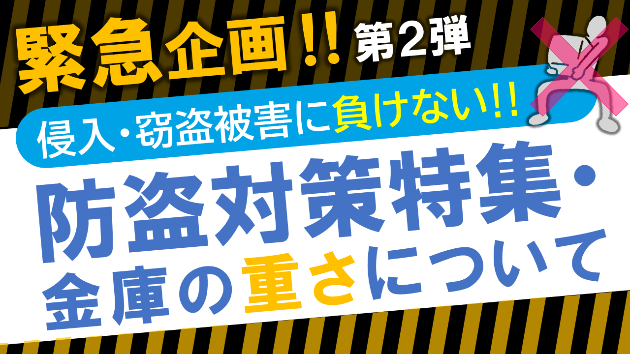 リーズナブルな価格ながら高品質・ロープライスの金庫をお届けしている株式会社オフィスバスターズ(東京都中央区 代表取締役社長 熊谷正慶 以下当社)が運営する「e金庫本舗」では、先日の配信後、多くのお客様からご反響をいただきました。そこで「防盗対策特集・金庫の固定について」に続き、今回も、緊急企画「防盗対策特集 その2」として、金庫選びをする際に、重要な「金庫の重量と選び方について」のポイントをe金庫本舗が運営するYoutube「金庫チャンネル」でご紹介します。