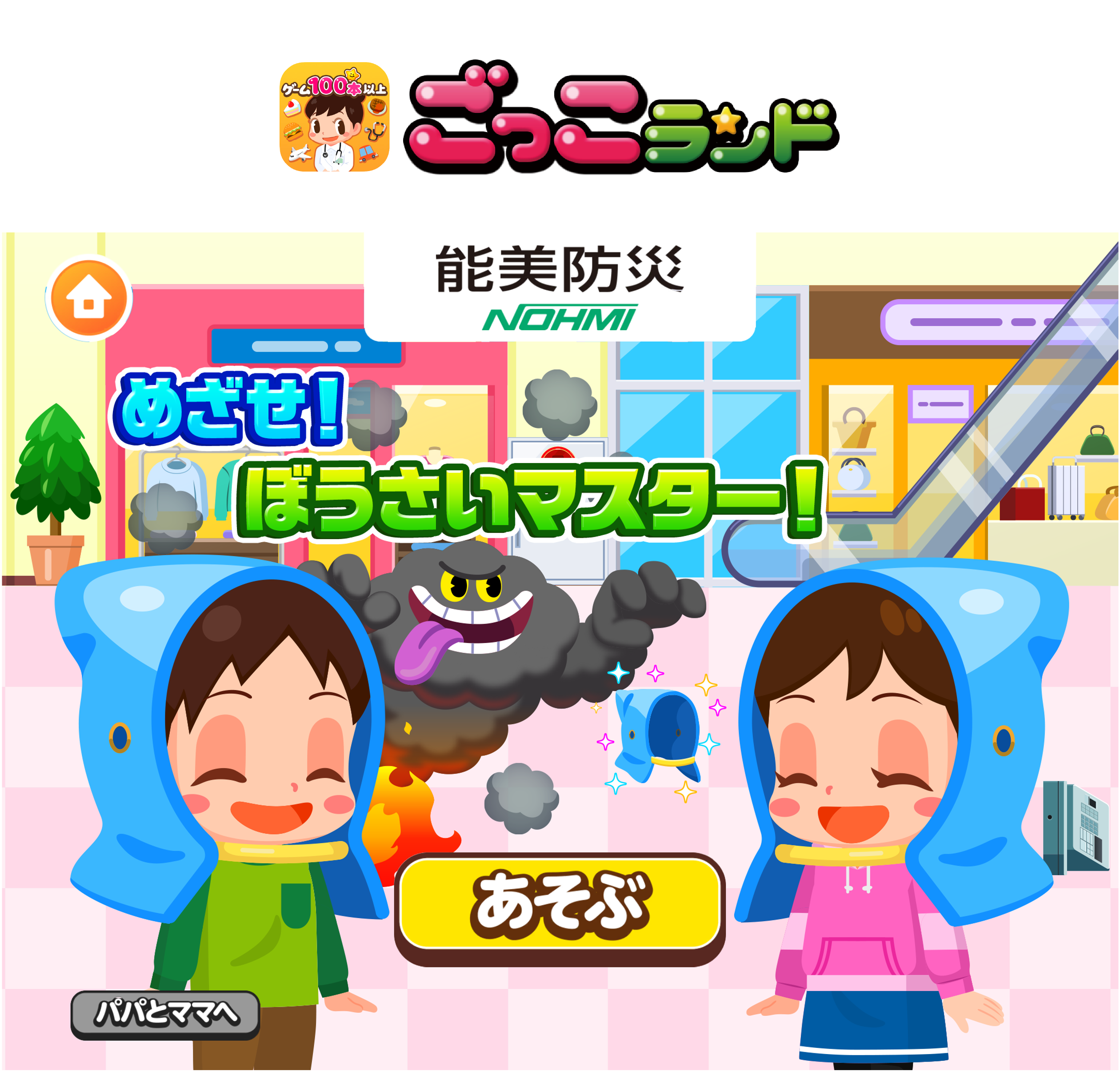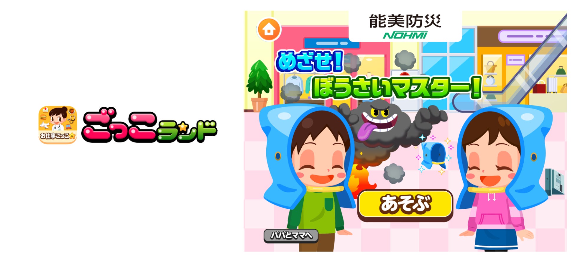 子ども向け社会体験アプリ『ごっこランド』に能美防災の新ゲーム「めざせ!ぼうさいマスター!」が登場!