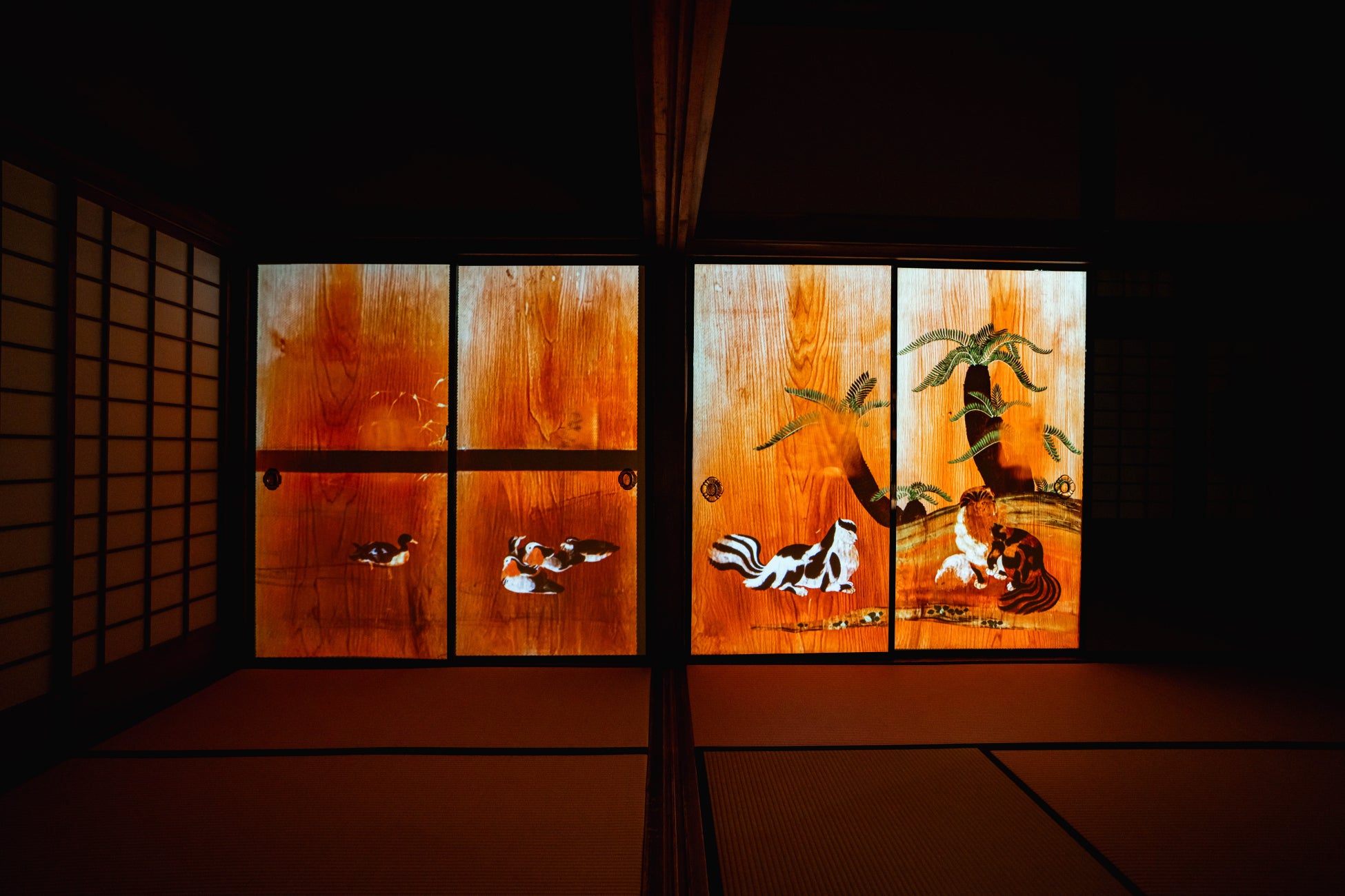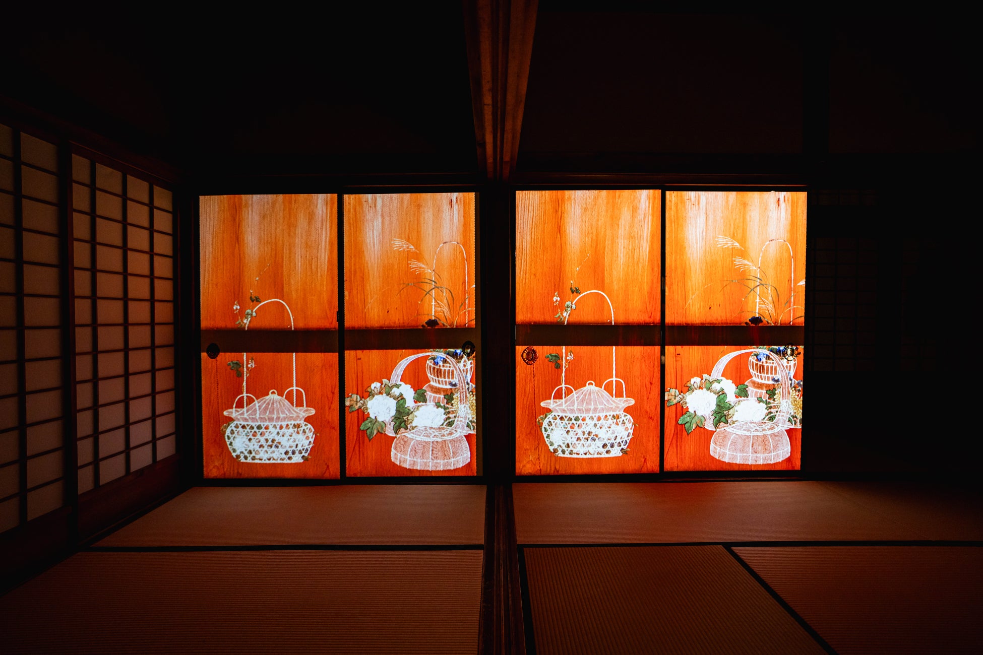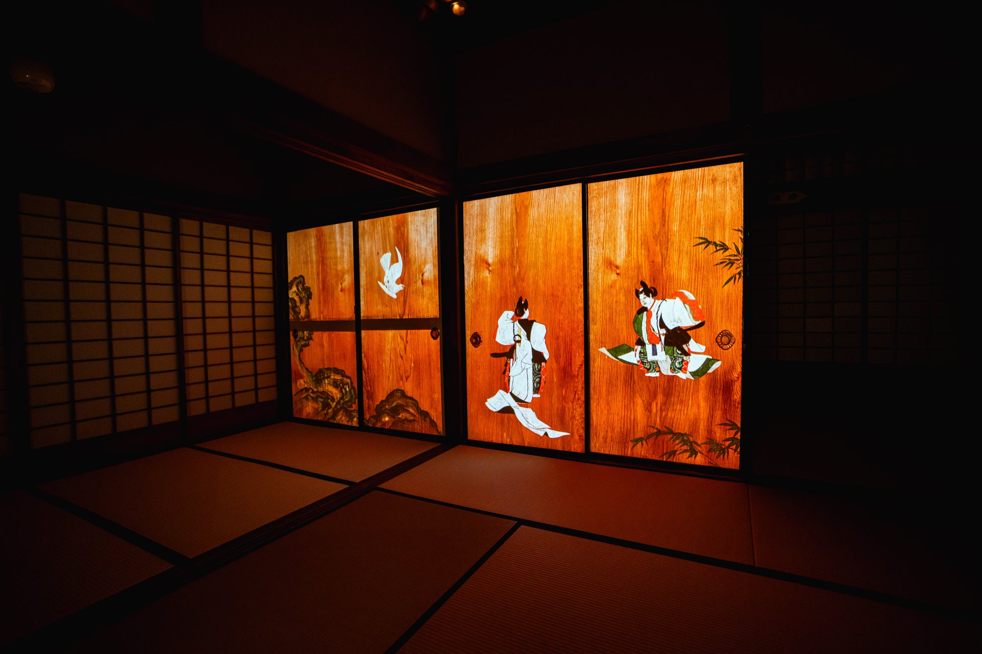 本堂奥の大方丈に復元された冷泉為恭筆・大方丈障壁画の襖の間や位牌堂を夜ならではの幻想的な光で彩り、大方丈障壁画49面とともに重要文化財に指定され40年以上公開されていない「板絵著色杉戸絵」16面と「小方丈杉戸絵」6面あわせて22面の高精細デジタルデータを初めて活用し、プロジェクションマッピングで杉戸絵の世界を再現する夜間特別拝観を行います。