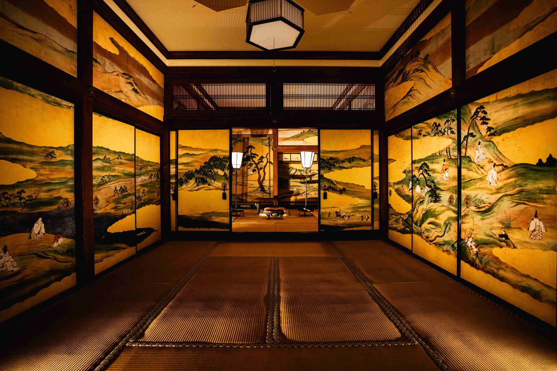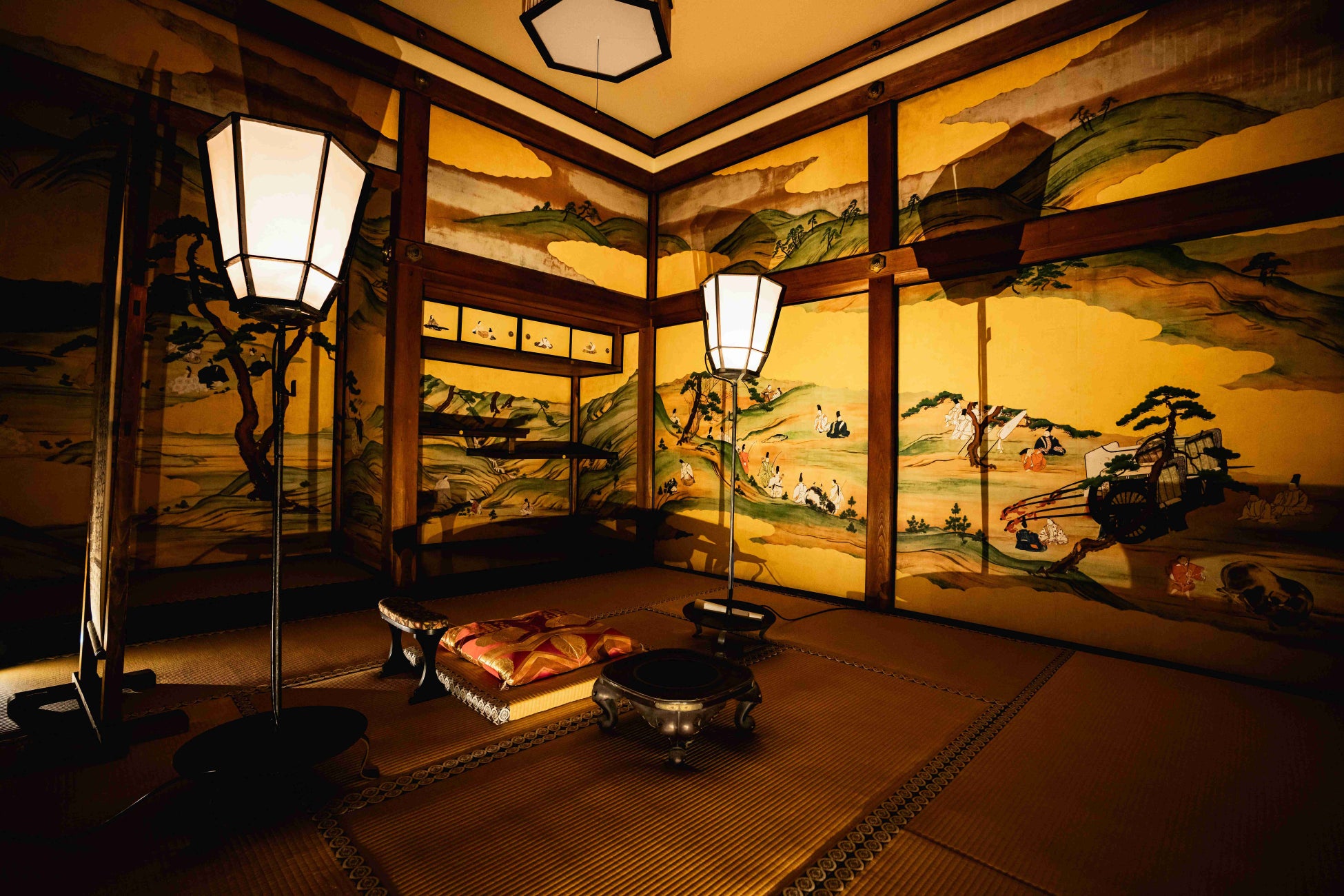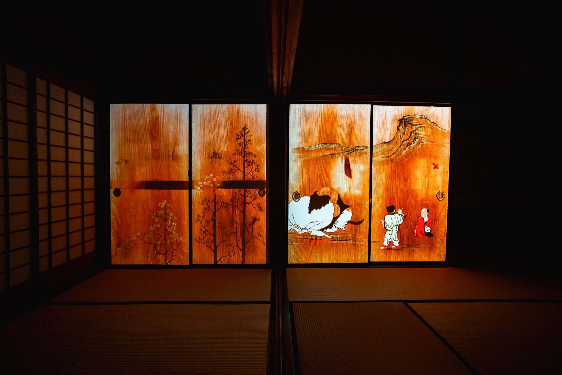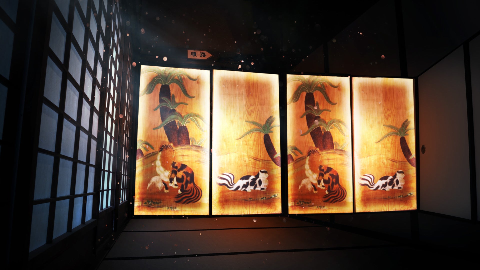 本堂奥の大方丈に復元された冷泉為恭筆・大方丈障壁画の襖の間や位牌堂を夜ならではの幻想的な光で彩り、大方丈障壁画49面とともに重要文化財に指定され40年以上公開されていない「板絵著色杉戸絵」16面と「小方丈杉戸絵」6面あわせて22面の高精細デジタルデータを初めて活用し、プロジェクションマッピングで杉戸絵の世界を再現する夜間特別拝観を行います。