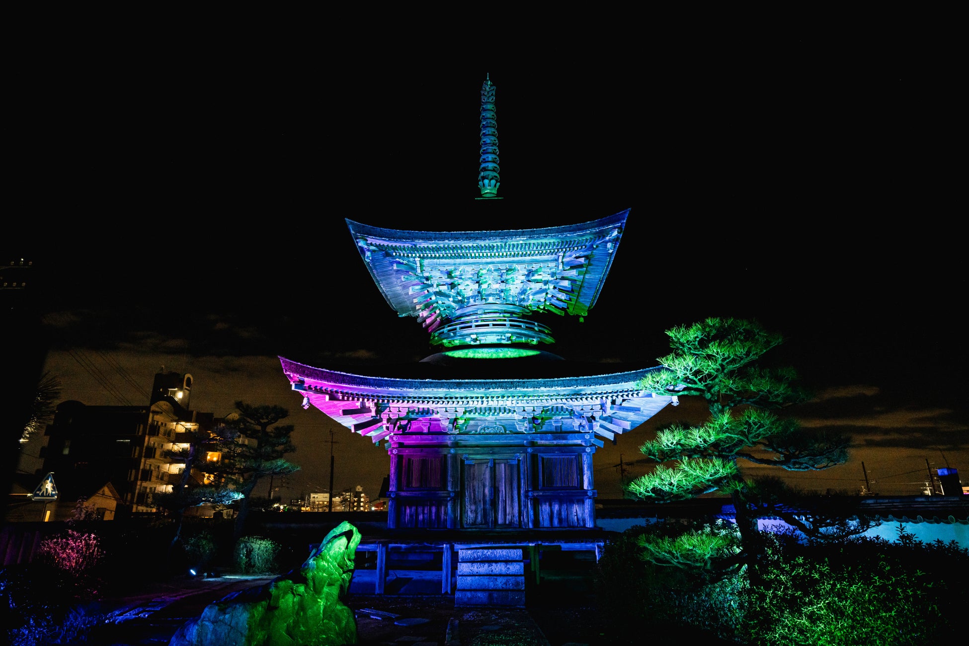 <①愛知県指定有形文化財 山門 プロジェクションマッピング&重要文化財 多宝塔 ライトアップ>