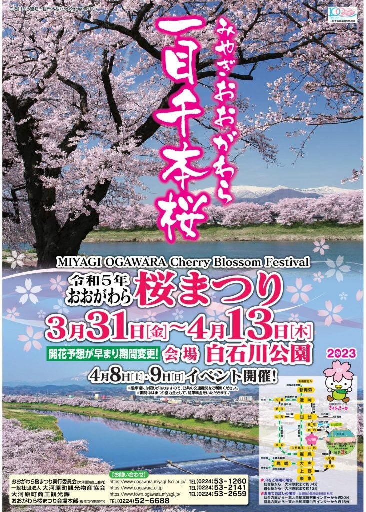 - 4年ぶりの桜まつりの開催。一目千本桜植樹100周年を記念して「大河原町」を全国にアピール。