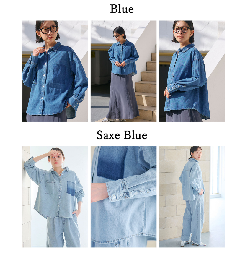 ポケットを別染めし、立体感を意識した大人のデニムシャツ。アームホールにゆとりを持たせながらも袖はダブルボタンで華奢見えし、女性らしいラインが魅力。