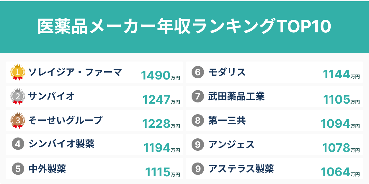医薬品メーカー年収ランキングについて