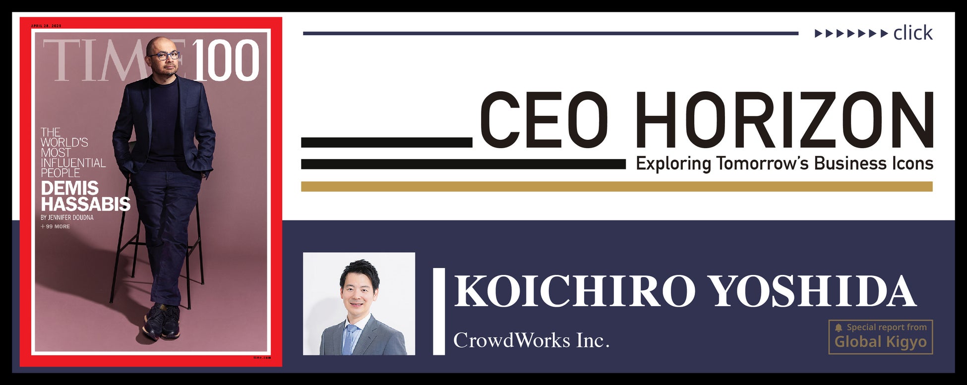 フリーランス業界最大級プラットフォーム(登録ワーカー680万人・登録企業100万社)を基盤に、IT人材&DXコンサルティングサービスを提供する株式会社クラウドワークス(本社:東京都渋谷区)は、Time Magazine Singapore Pte. Ltd.(本社:シンガポール)が発行する英文ニュース誌「TIME」(以下「TIME誌」)の企画「CEO HORIZON」(Exploring Tommorow’s Business Icons)において、当社代表取締役社長 兼 CEO 吉田 浩一郎についての記事が掲載されましたことをお知らせします。