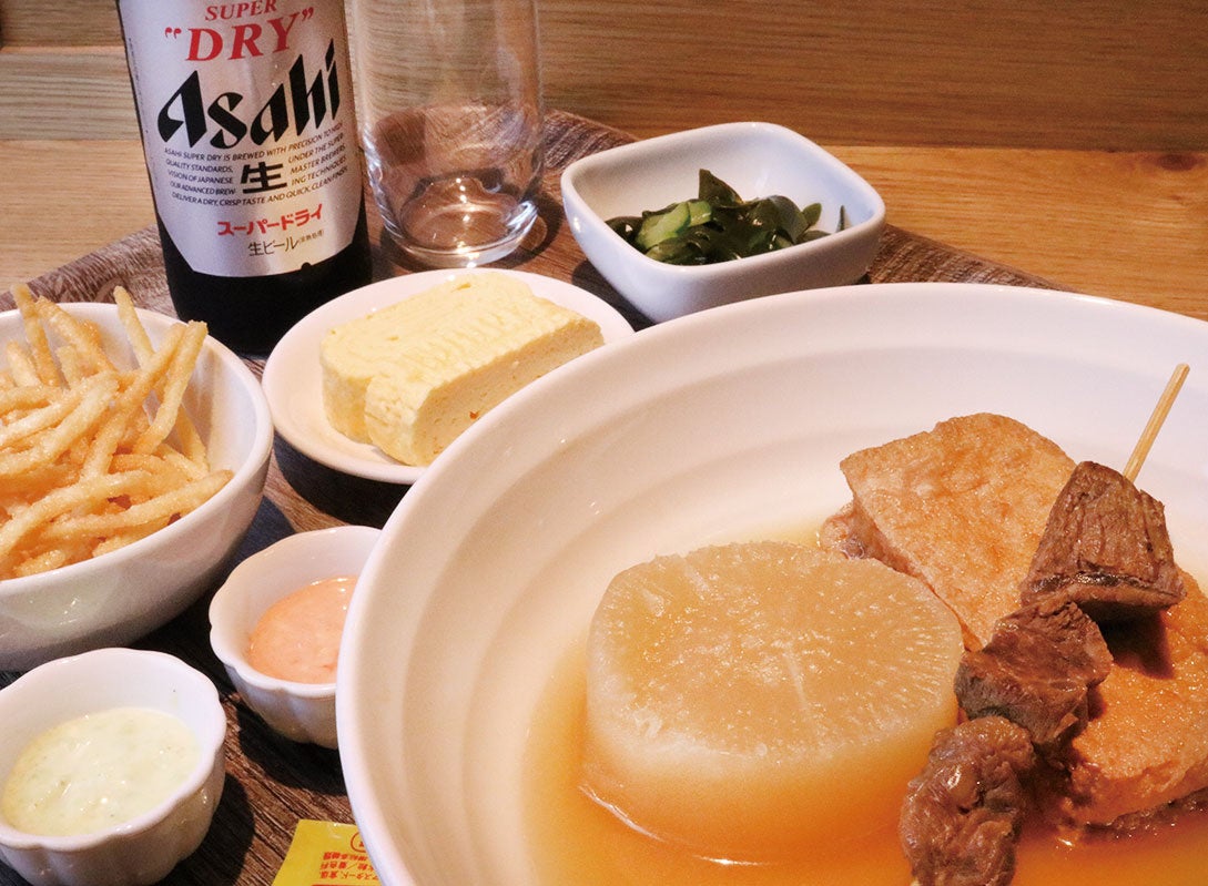 おでん3種、出汁巻き玉子、うどんケンピ、本日の小鉢一品