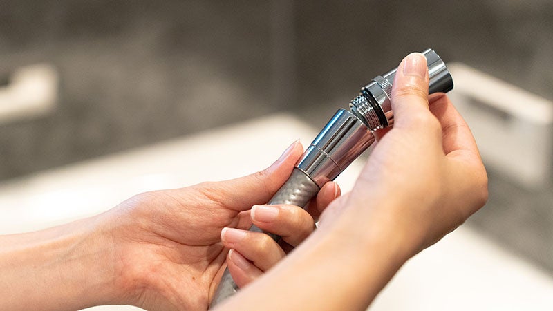 ①シャワーヘッドとホースを取り外します。