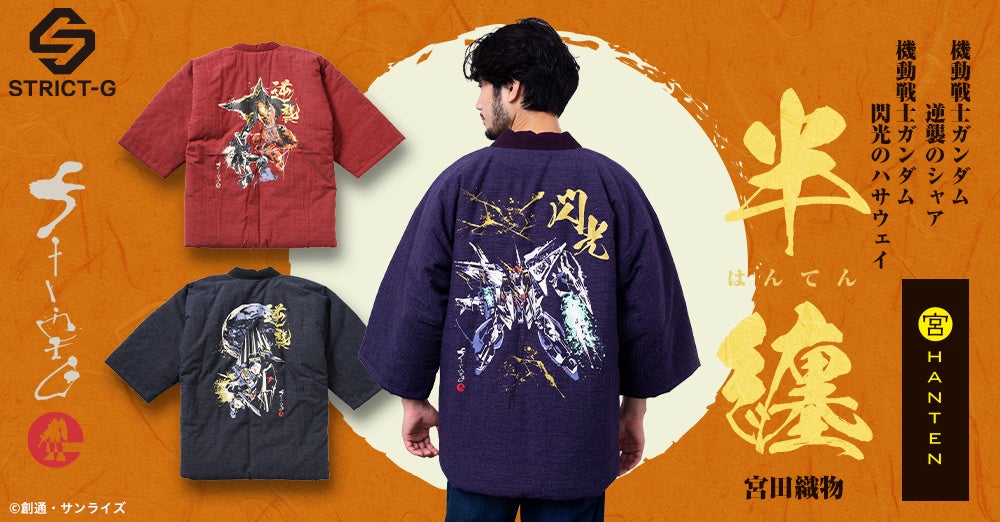 株式会社バンダイ ファッションブランド事業部では、ガンダムの世界観を取り入れたアパレルショップ「STRICT-G」にて、2022年12月17日(土)より、「STRICT-G JAPAN」シリーズと宮田織物とのコラボレーションによる『機動戦士ガンダム 逆襲のシャア』『機動戦士ガンダム 閃光のハサウェイ』モデルのわた入れはんてん3種を販売開始いたします。また、店頭販売に先駆け、バンダイナムコグループ公式通販サイト「プレミアムバンダイ」( https://p-bandai.jp/ )では、2022年12月16日(金)13時より予約販売を開始いたします。