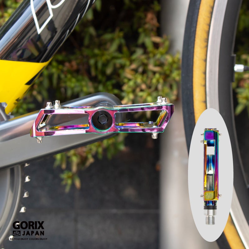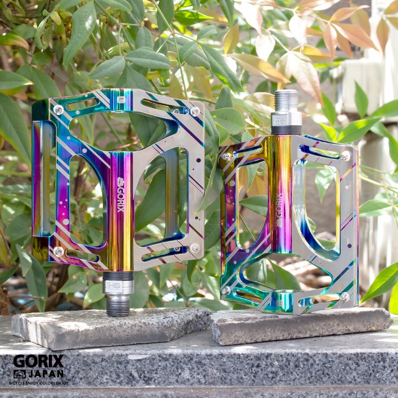 【新商品】【3つのベアリングで高い回転性を実現!!】自転車パーツブランド「GORIX」から、オイルスリックカラーのフラットペダル (GX-FY709)が新発売!!