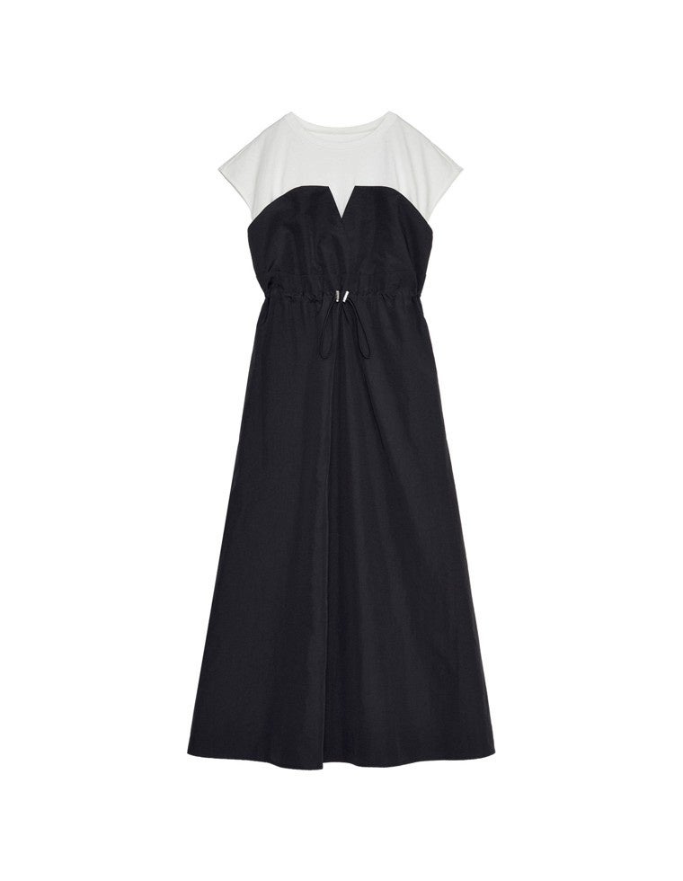 [低身長/高身長サイズ有]フレンチスリーブカットソー切り替えドロストフレアドッキングワンピース
