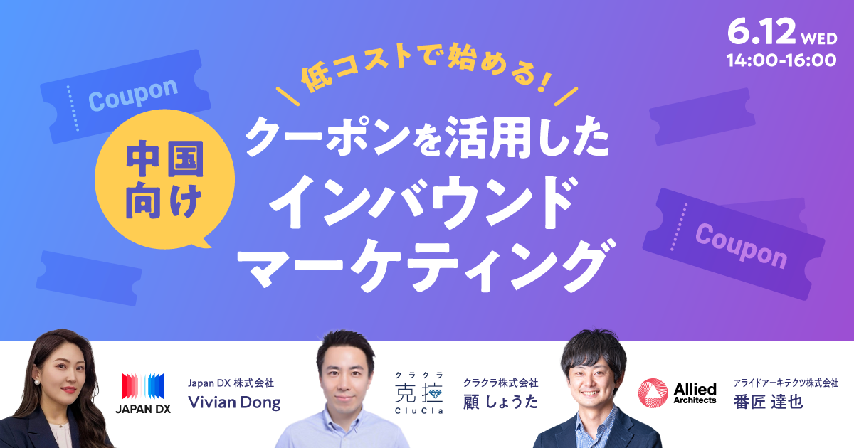 【無料WEBセミナー】「低コストで始める! クーポンを活用した中国向けインバウンドマーケティング」を6月12日(水)に開催