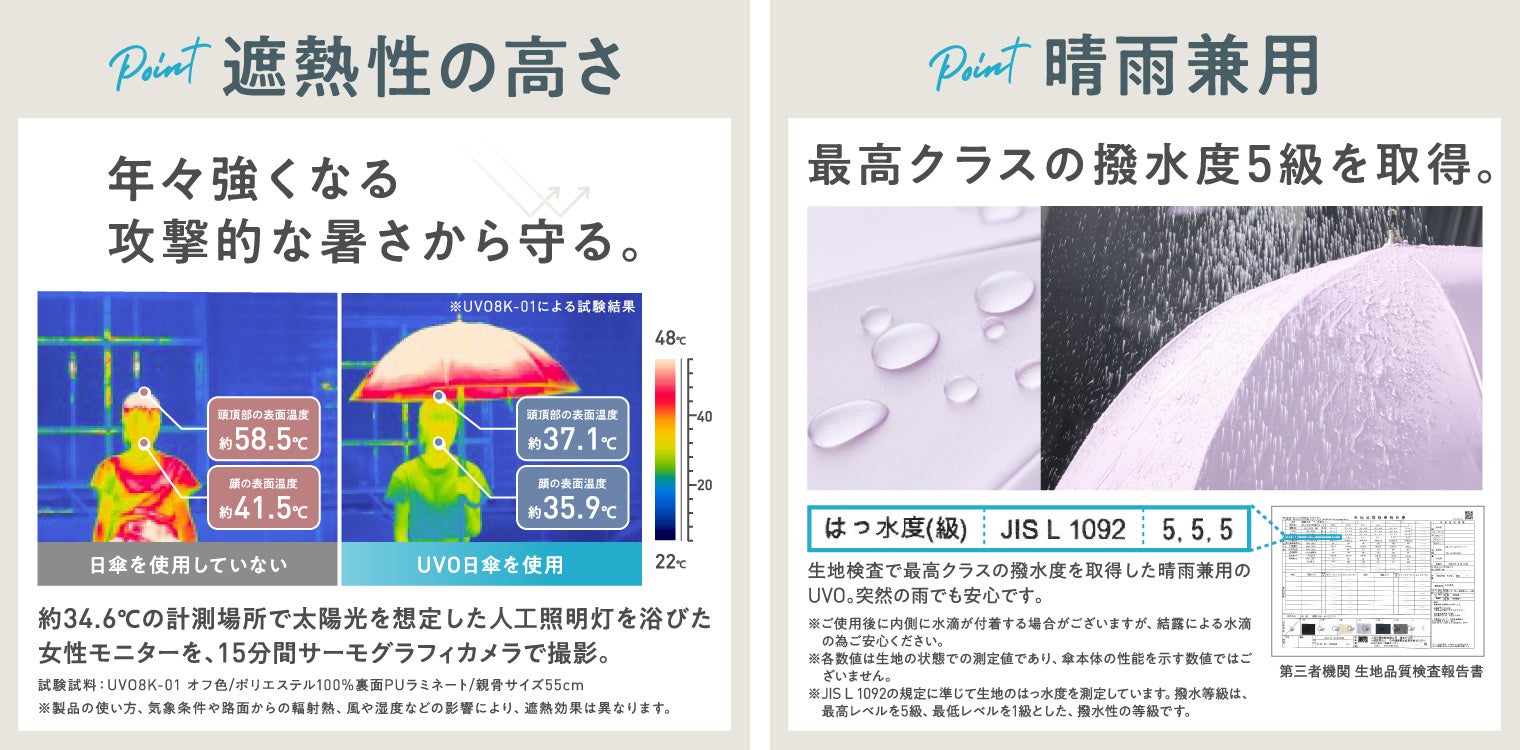 撥水力の高いUVOは突然の雨にも対応できる優れもの。