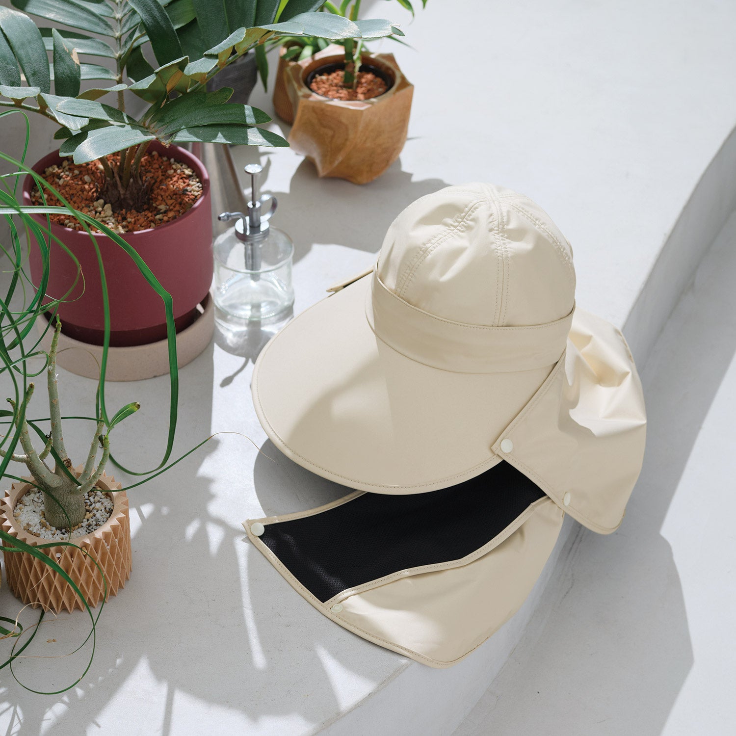 ウォーキング、ガーデニング、ペットのお散歩、スポーツ観戦、小さなお子様のいる方など、「日傘が使えない時でもしっかり紫外線対策をしたい」という思いに応える4wayサンバイザーが登場。取り外し可能なサンシェードとフェイスガードが付いており、シーンにあわせて頭や顔、首周りをガードできます。洗練されたおしゃれなパッケージ入りでギフトにもオススメ。UVOの完全遮光100%生地を使用した、夏の強い味方です。