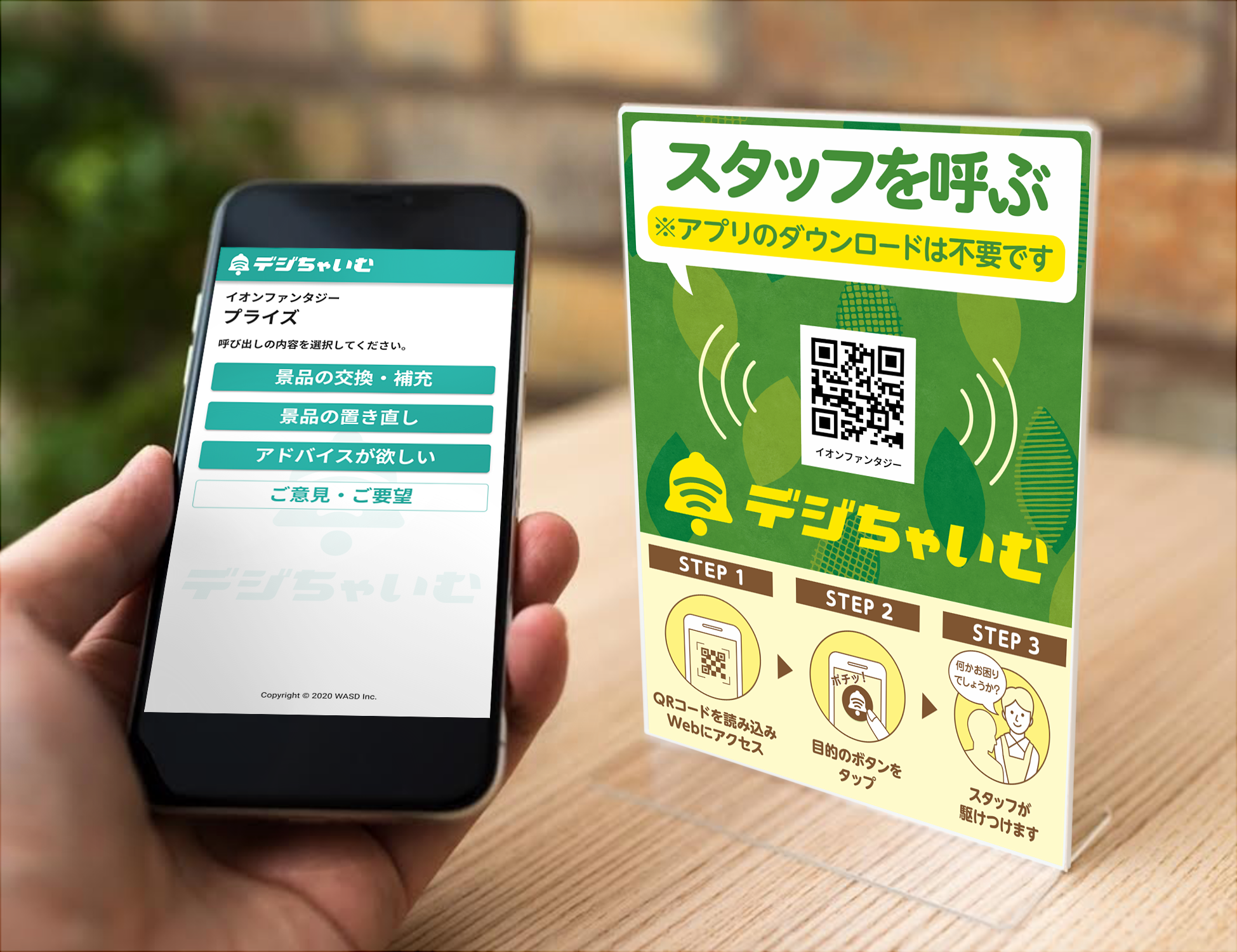 株式会社イオンファンタジー(本社:千葉県千葉市、代表取締役社長:藤原徳也、以下、当社)は、お客さまにより快適に安心して店内で遊んでいただくために、店内に設置された呼び出し用の二次元コードを使い非接触で店員をすぐに呼び出せる『デジちゃいむ』を2022年6月末までに225店舗のモーリーファンタジー・PALOに導入いたします。