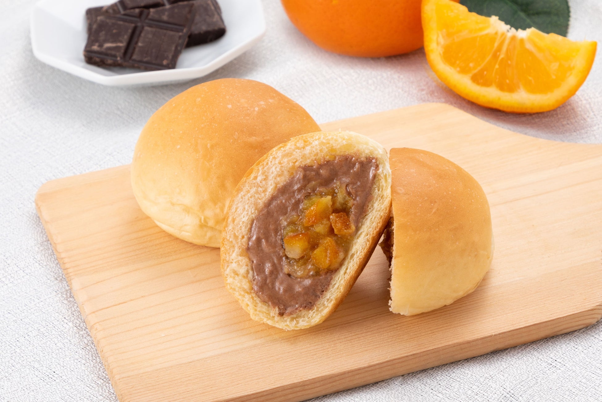 チョコレートとオレンジの相性が良く、オレンジピールの食感もお楽しみいただける、少し大人な味わいの季節限定のくりーむパンです。