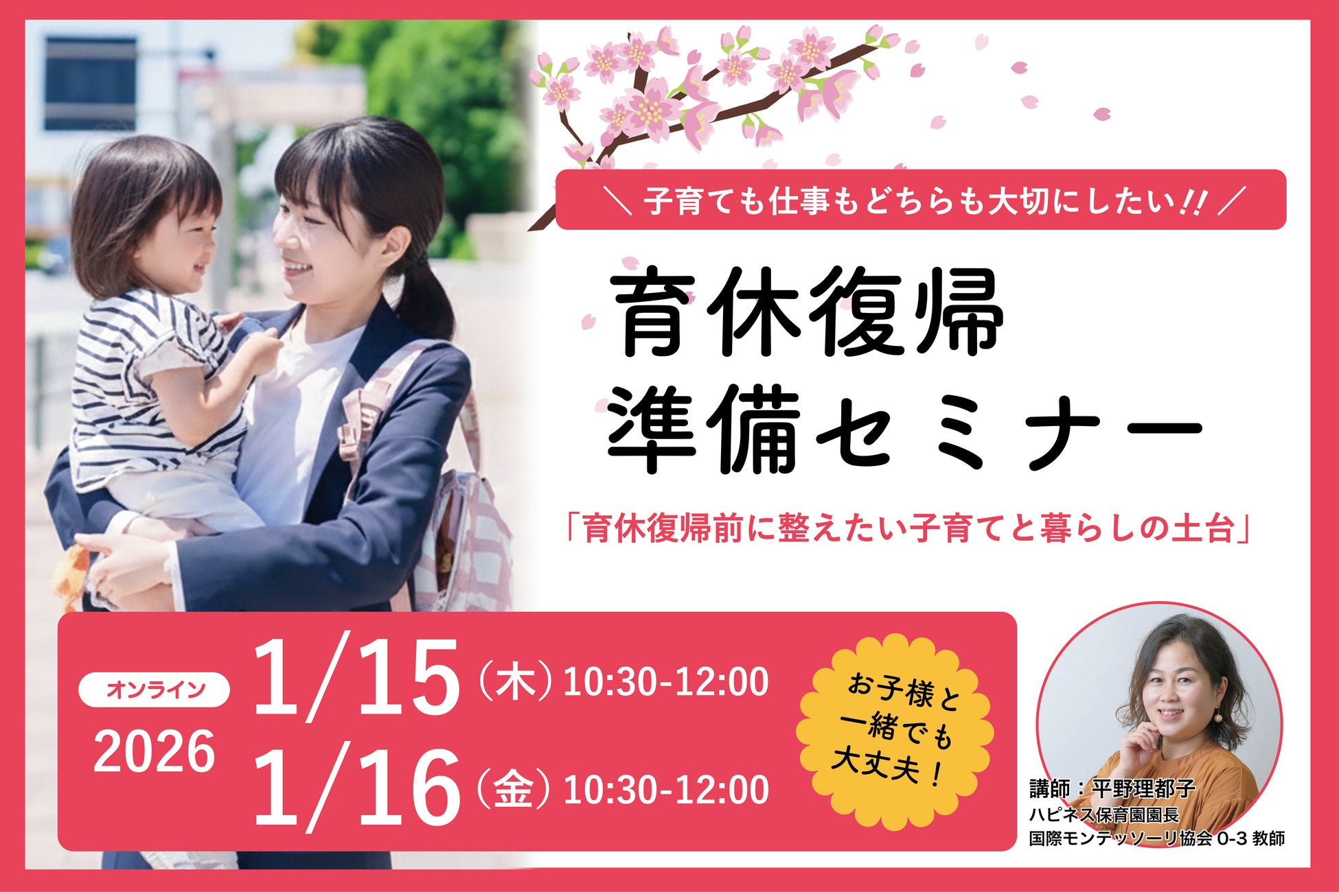 〜育休復帰前の不安を「これで大丈夫」に変えるオンラインセミナーを開催