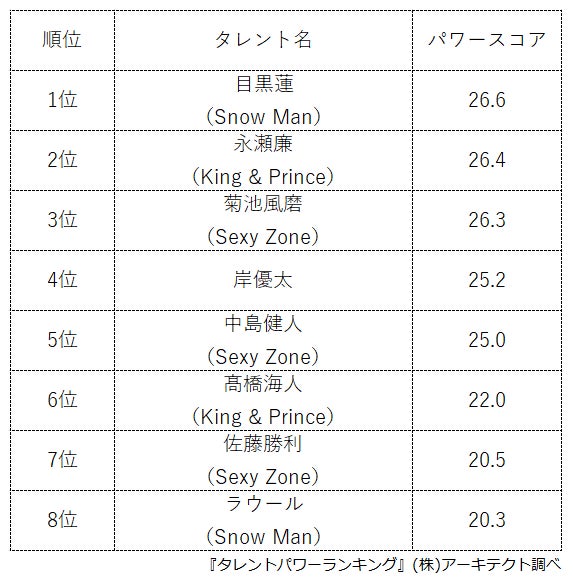 『タレントパワーランキング』が10~20代のジャニーズランキングを発表!株式会社アーキテクトがスタートさせた、WEBサイト『タレントパワーランキング』ランキング企画第241弾!!