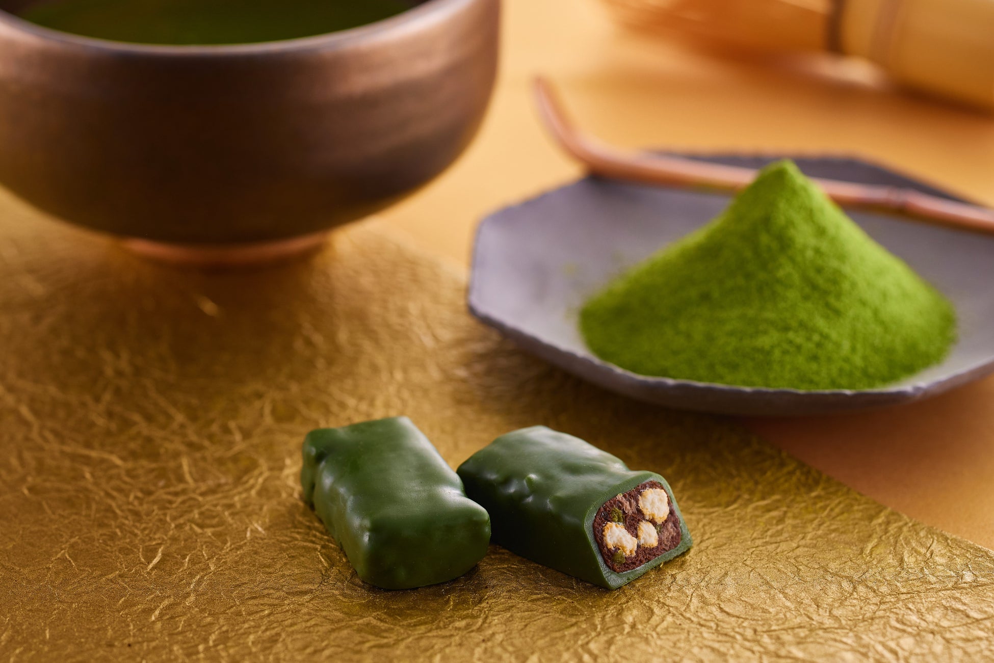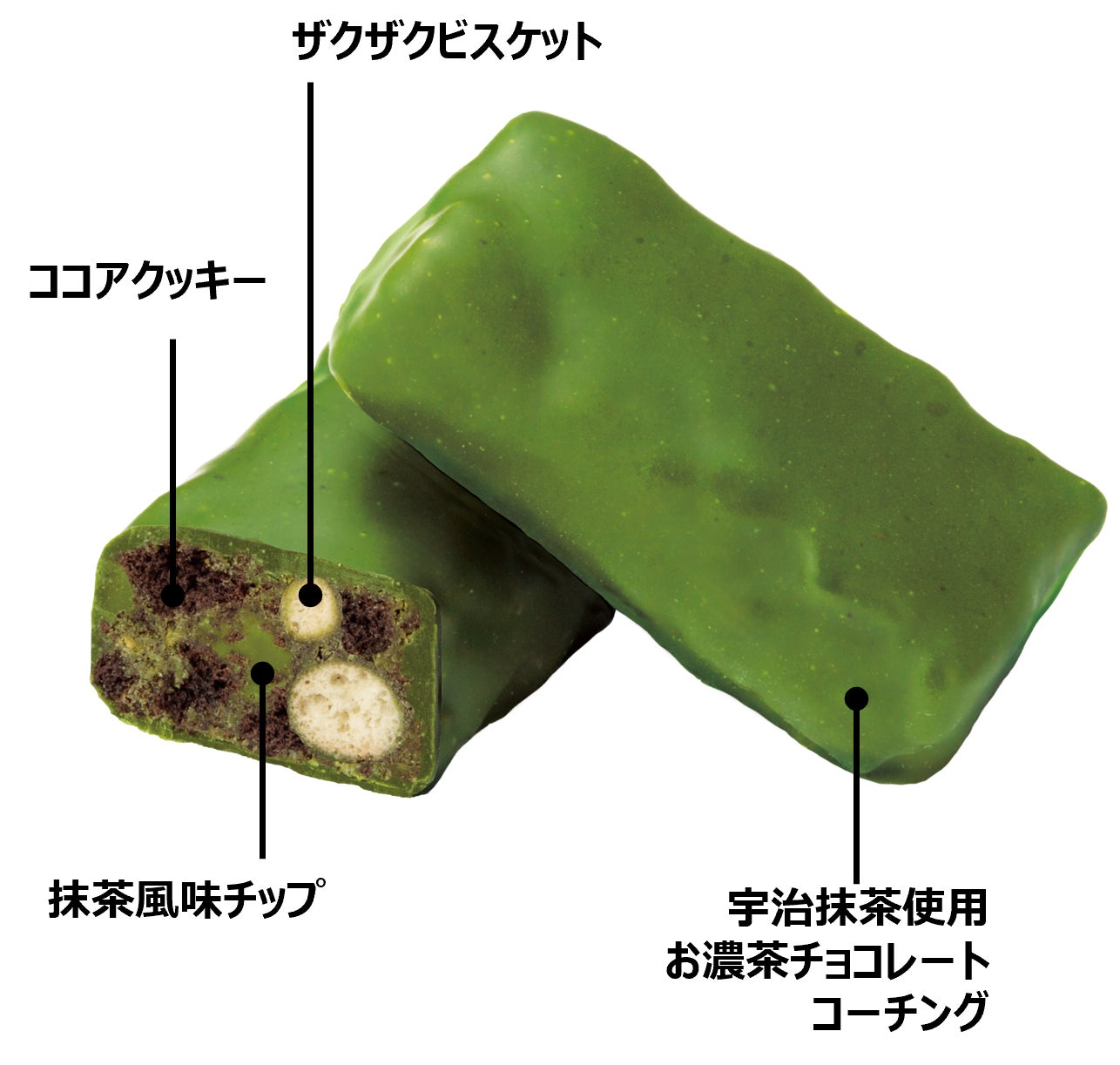 宇治抹茶パウダーをふんだんに使用した圧倒的濃い抹茶感を楽しめるチョコレートコーチングです。