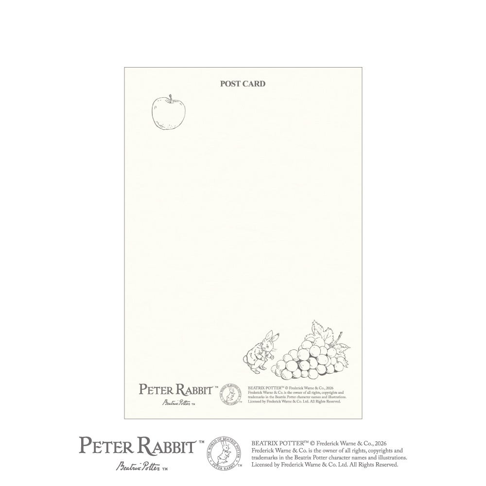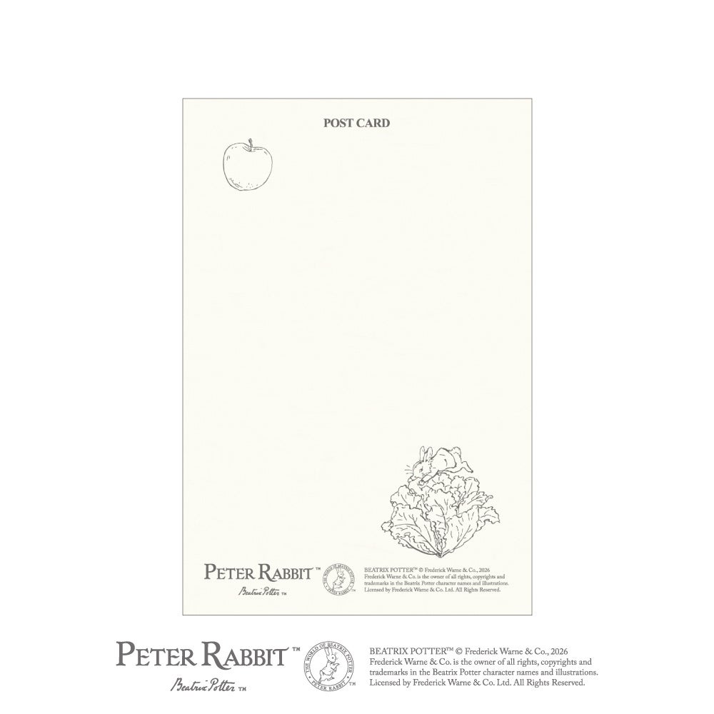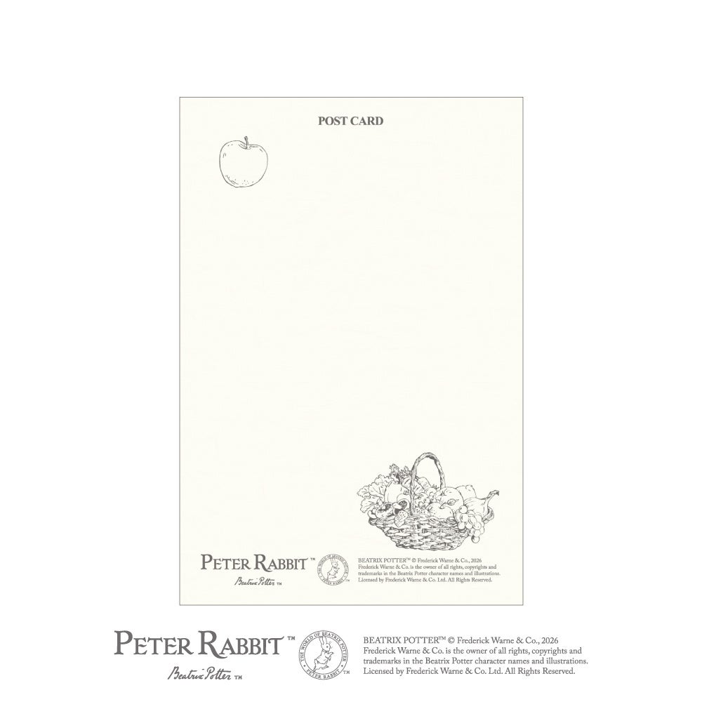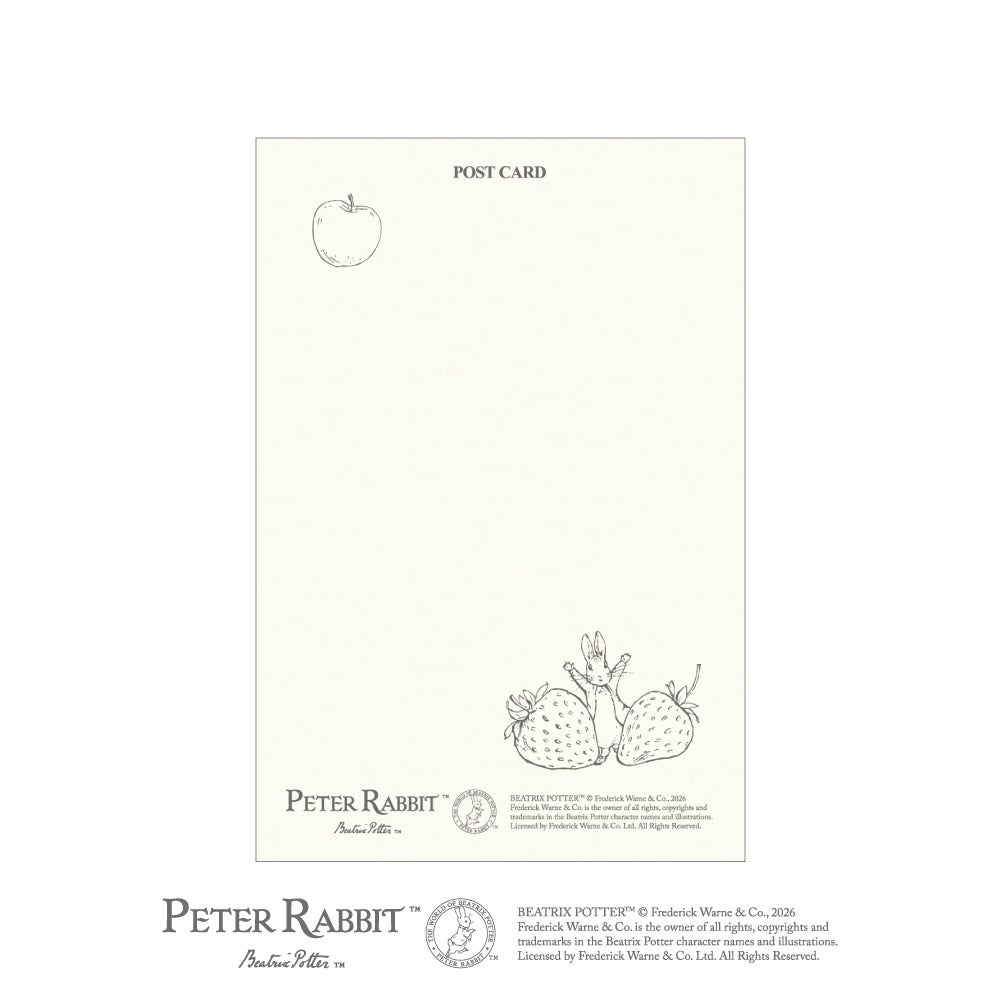 ピーターラビット™の世界を、みずみずしいフルーツ&ベジタブルとともに描いた絵はがきが登場。