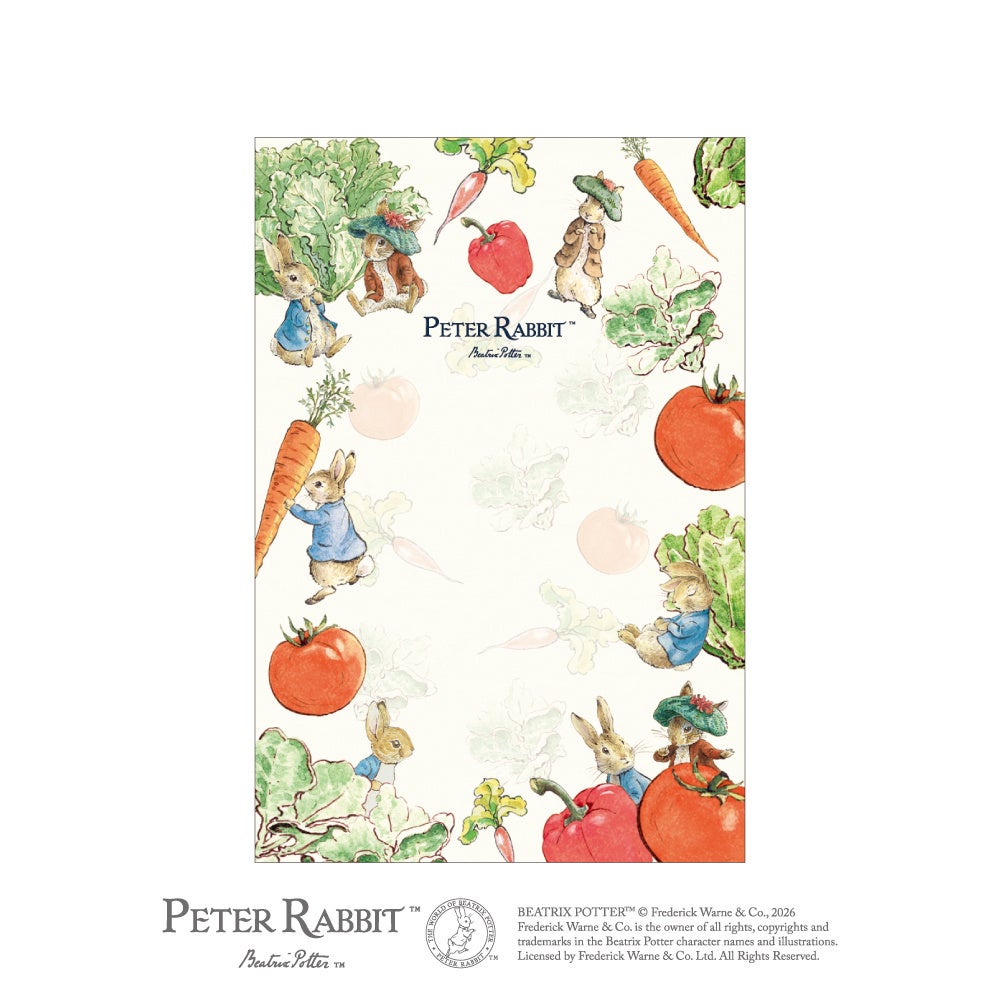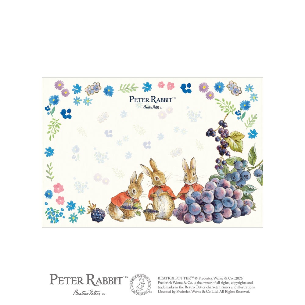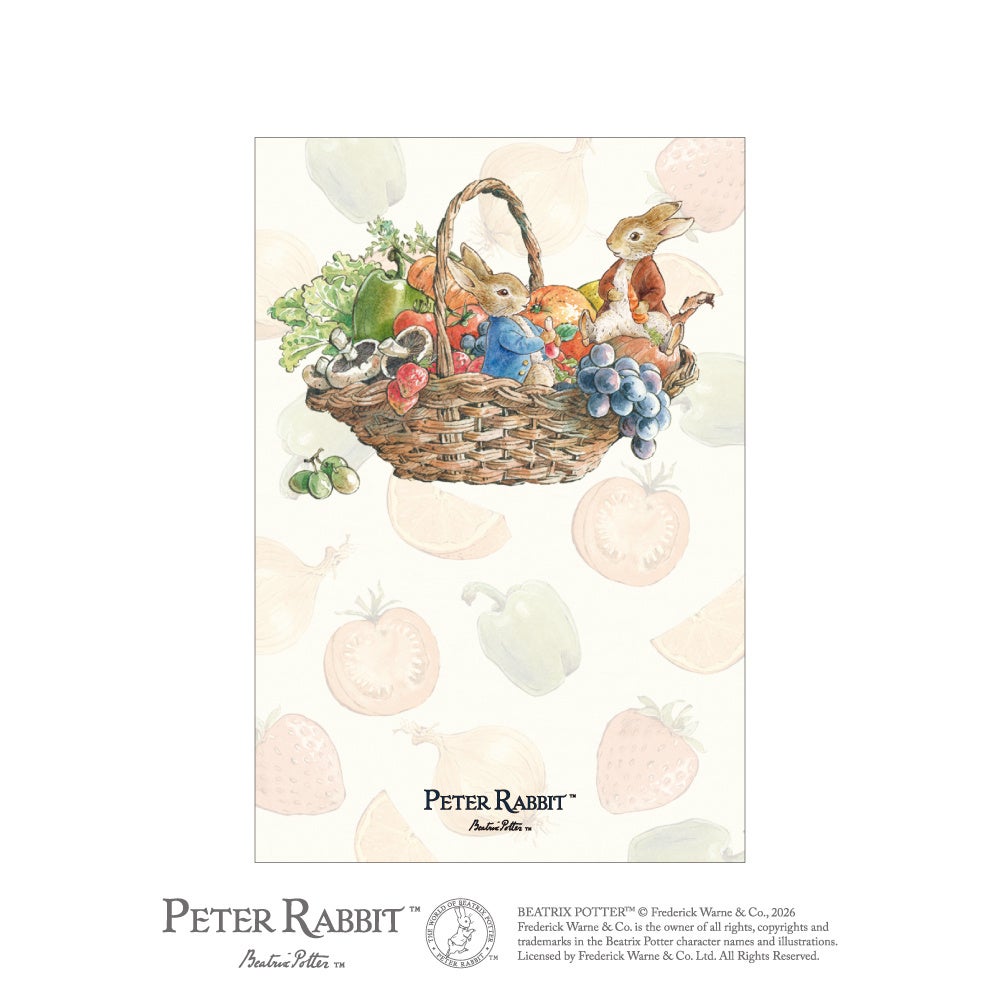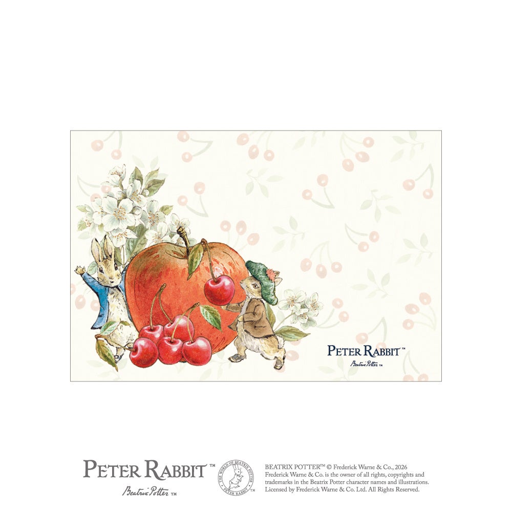 ピーターラビット™の世界を、みずみずしいフルーツ&ベジタブルとともに描いた絵はがきが登場。