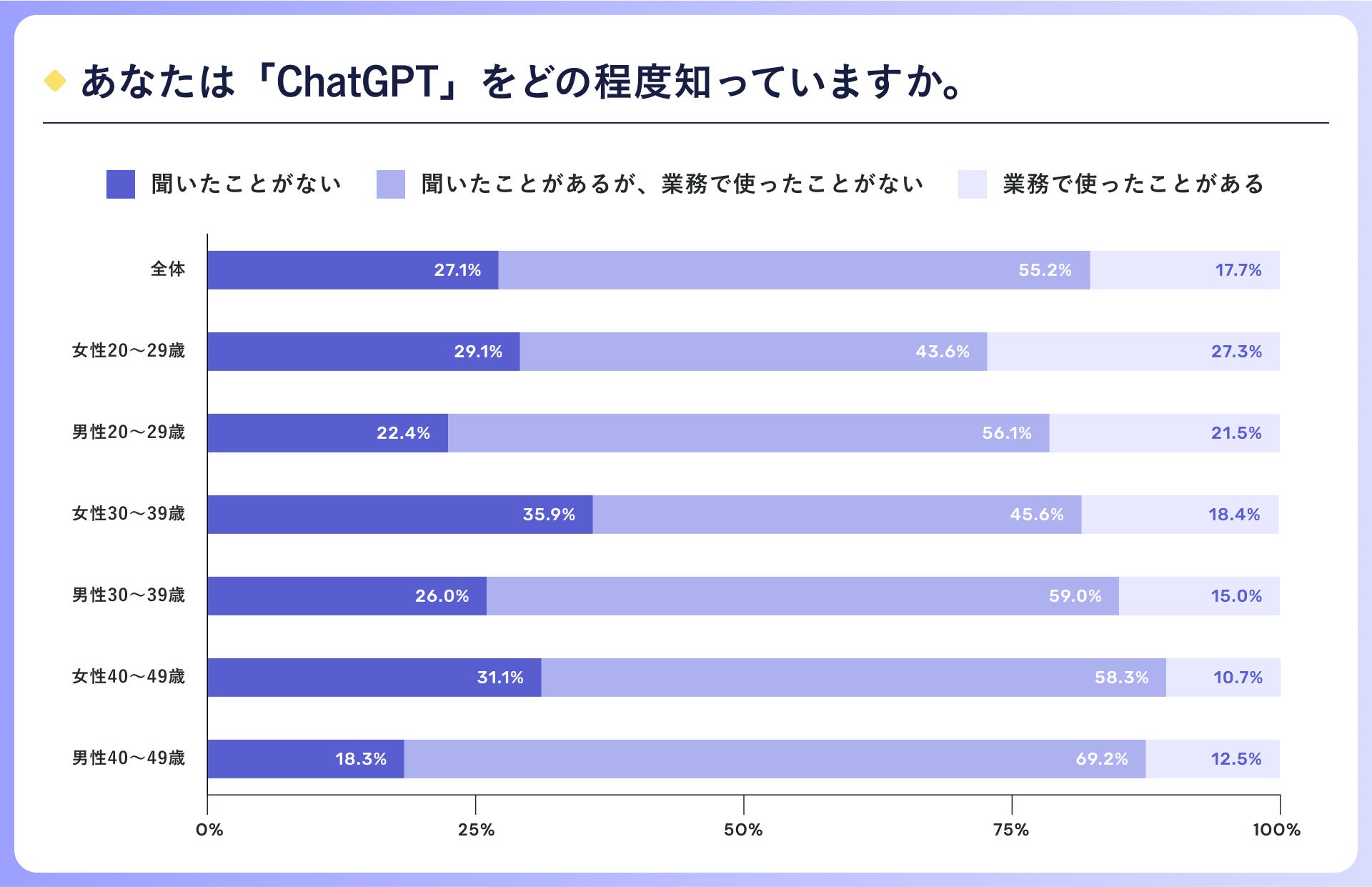 »ChatGPTの認知度は全体で約70%、副業経験者の約3割が「業務で使ったことがある」