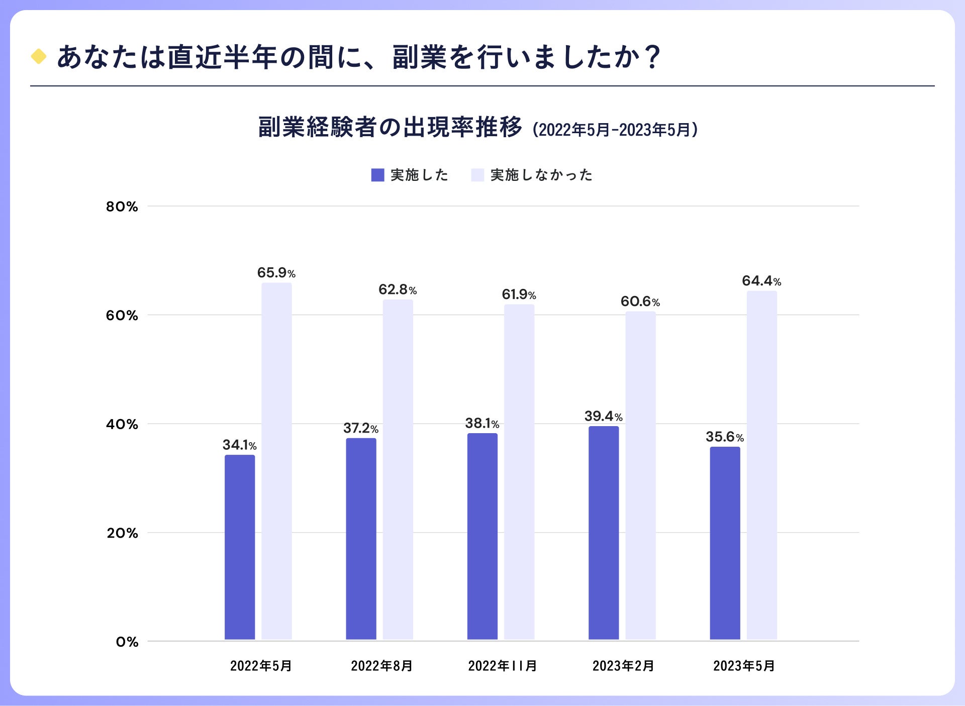 »副業経験者は、前年同月比で34.1%→35.6%と増加