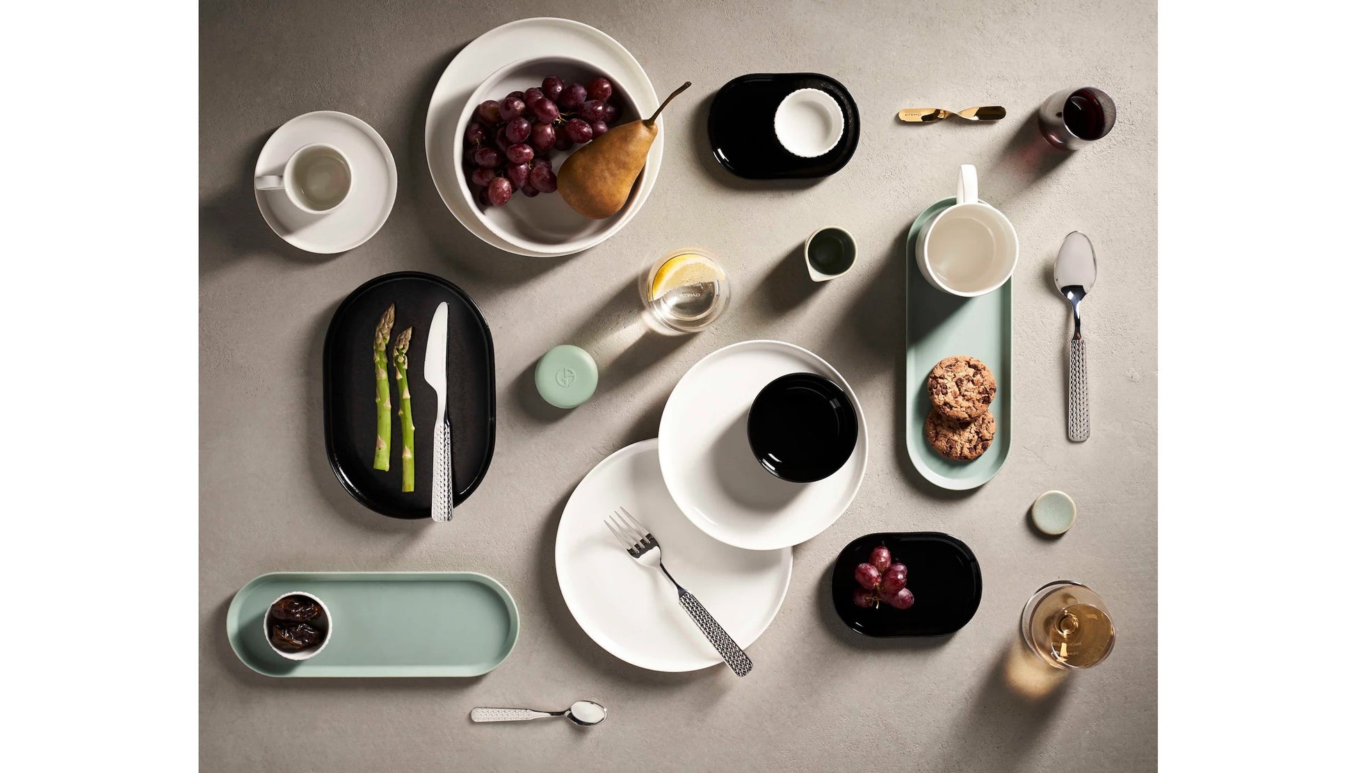 また、柄が施されたカトラリーは、エレガントな手触りとなっており、アルマーニ / カーザならではの体験を直接お客様にお届けします。