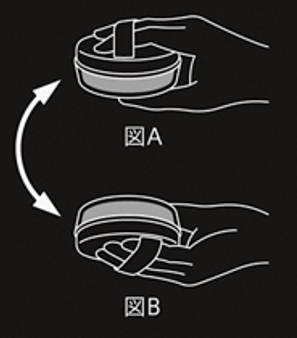 ① 中フタにパフをあて(図A)、容器を数回逆さにしてパウダーをとります。(図B)