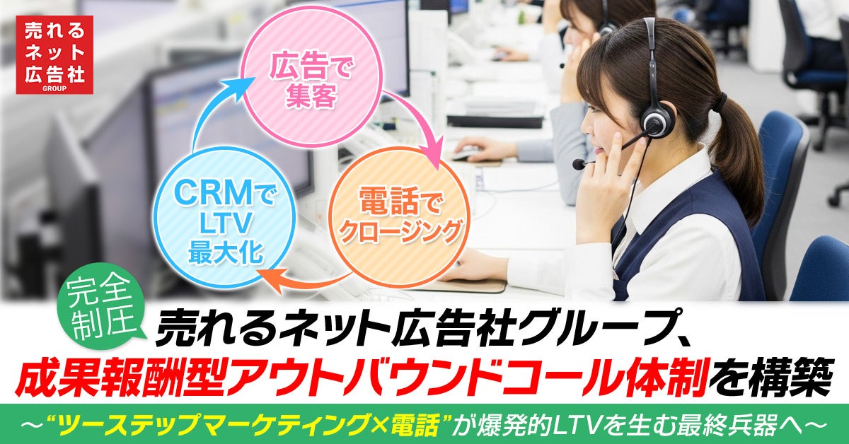 【完全制圧】売れるネット広告社グループ、成果報酬型アウトバウンドコール体制を構築 ~“ツーステップマーケティング×電話”が爆発的LTVを生む最終兵器へ~