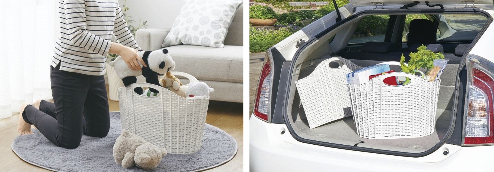 また、容量は約38リットルと洗濯物がたっぷり入る大きめサイズ。ランドリーバスケットとしてだけでなく、かさばるおもちゃ等もまとめて収納していただけます。
