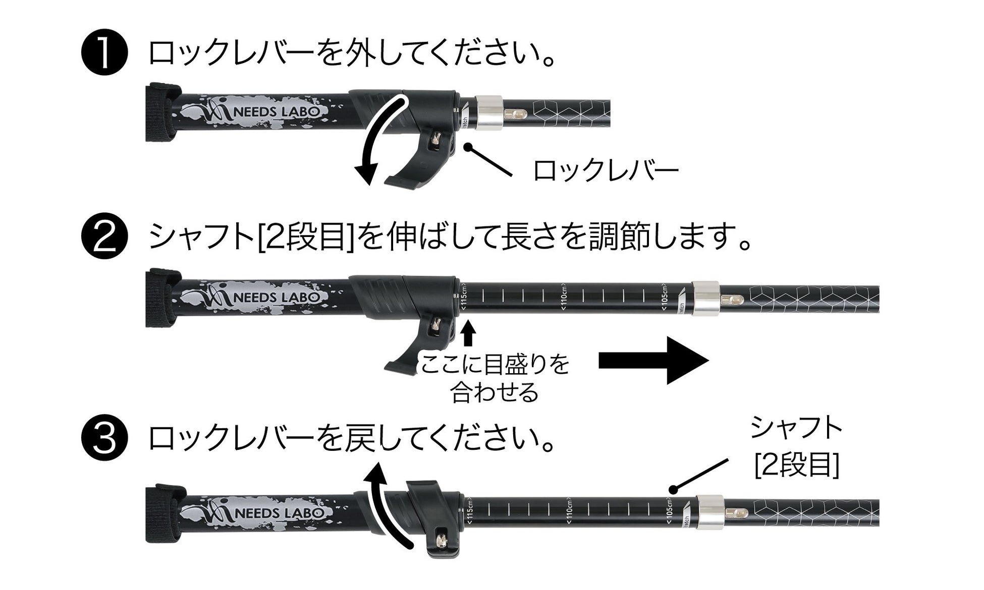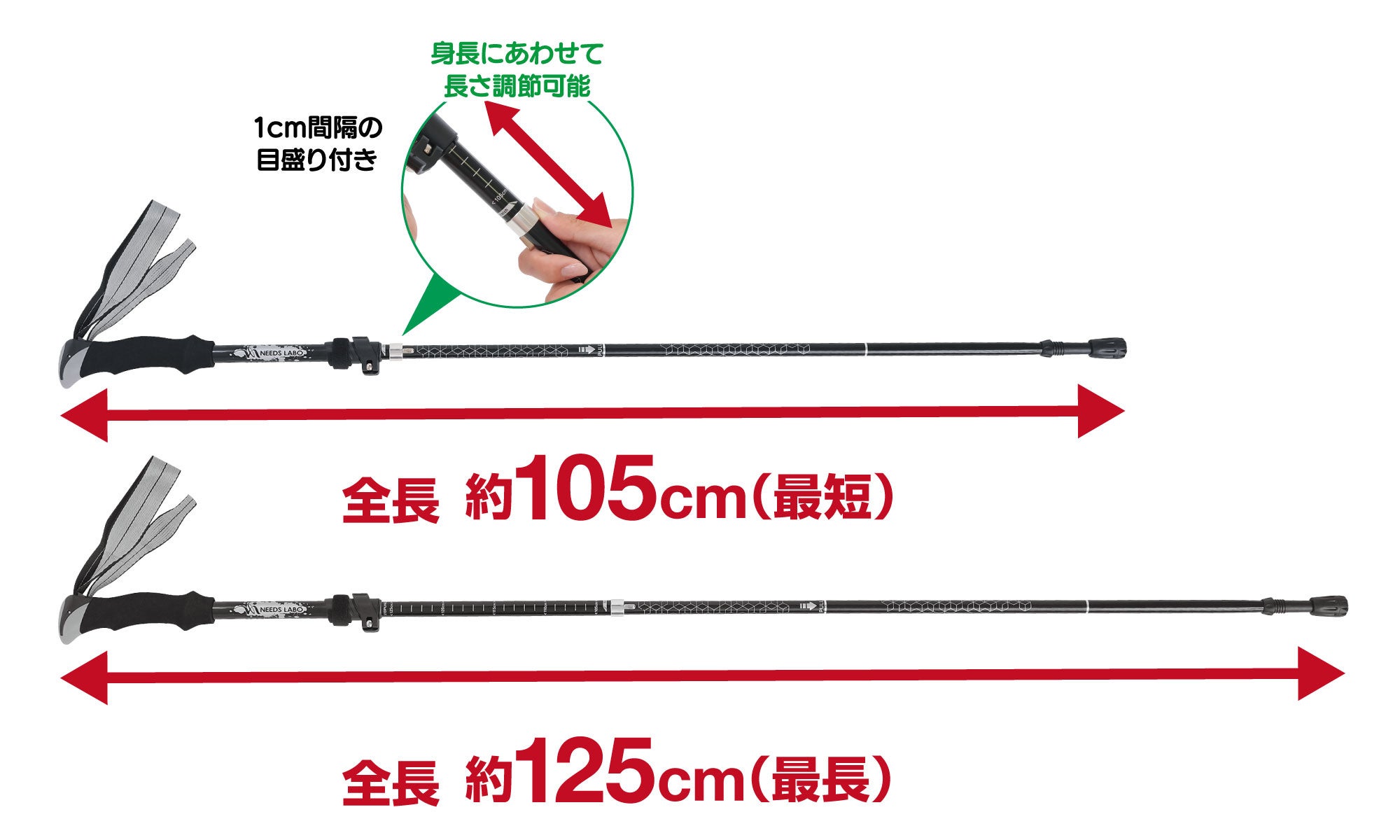 長さが一目で分かる目盛り付きで簡単にサイズ調節できます。