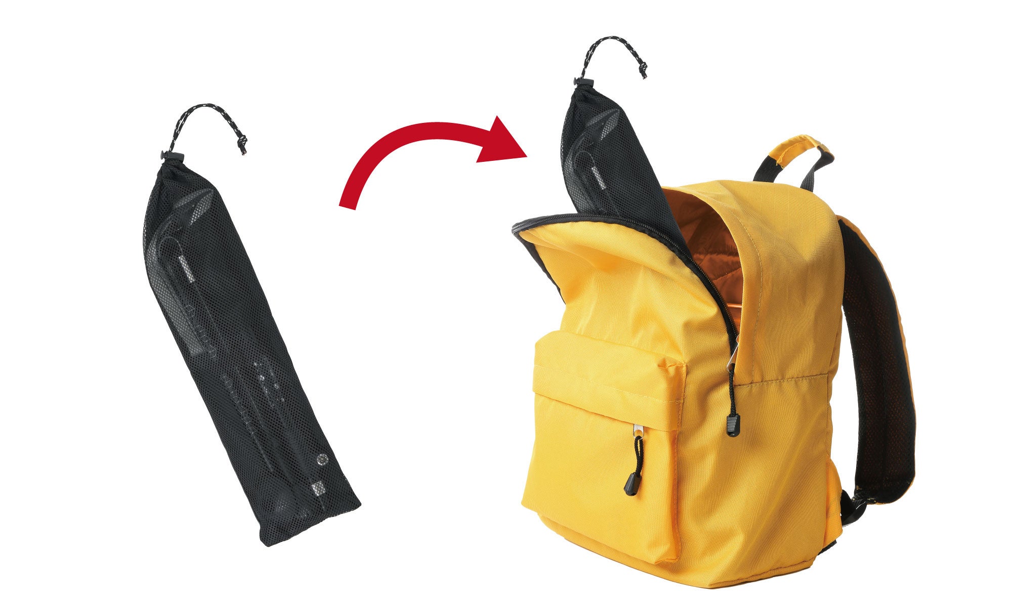 1本当たり約285g(ポーチ含)の軽量タイプ。折りたためばリュックに入るコンパクトサイズに!便利なポーチ付き♪