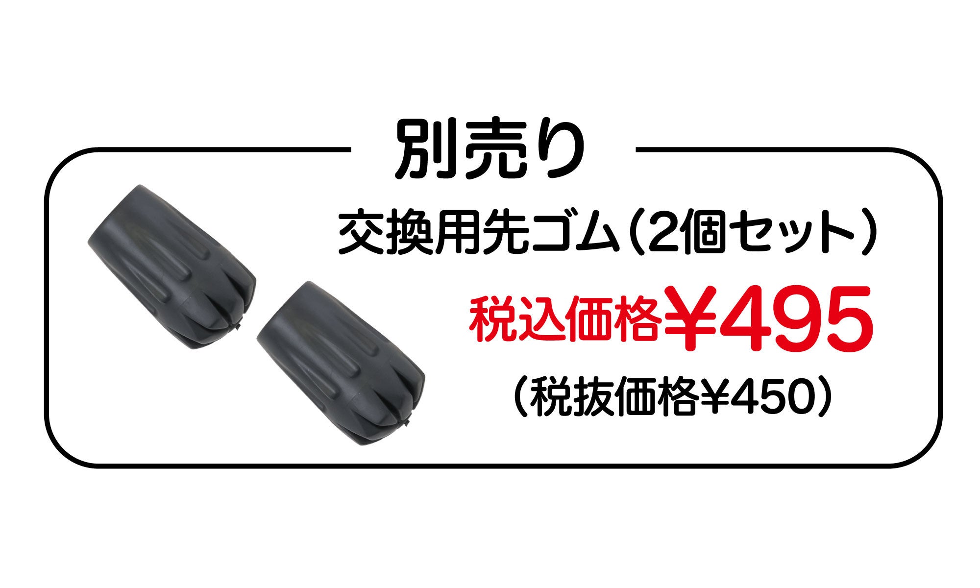 アスファルトなどの路面で使う先ゴムと泥などのぬかるんだ地面にめり込むのを防ぐバスケット付き。