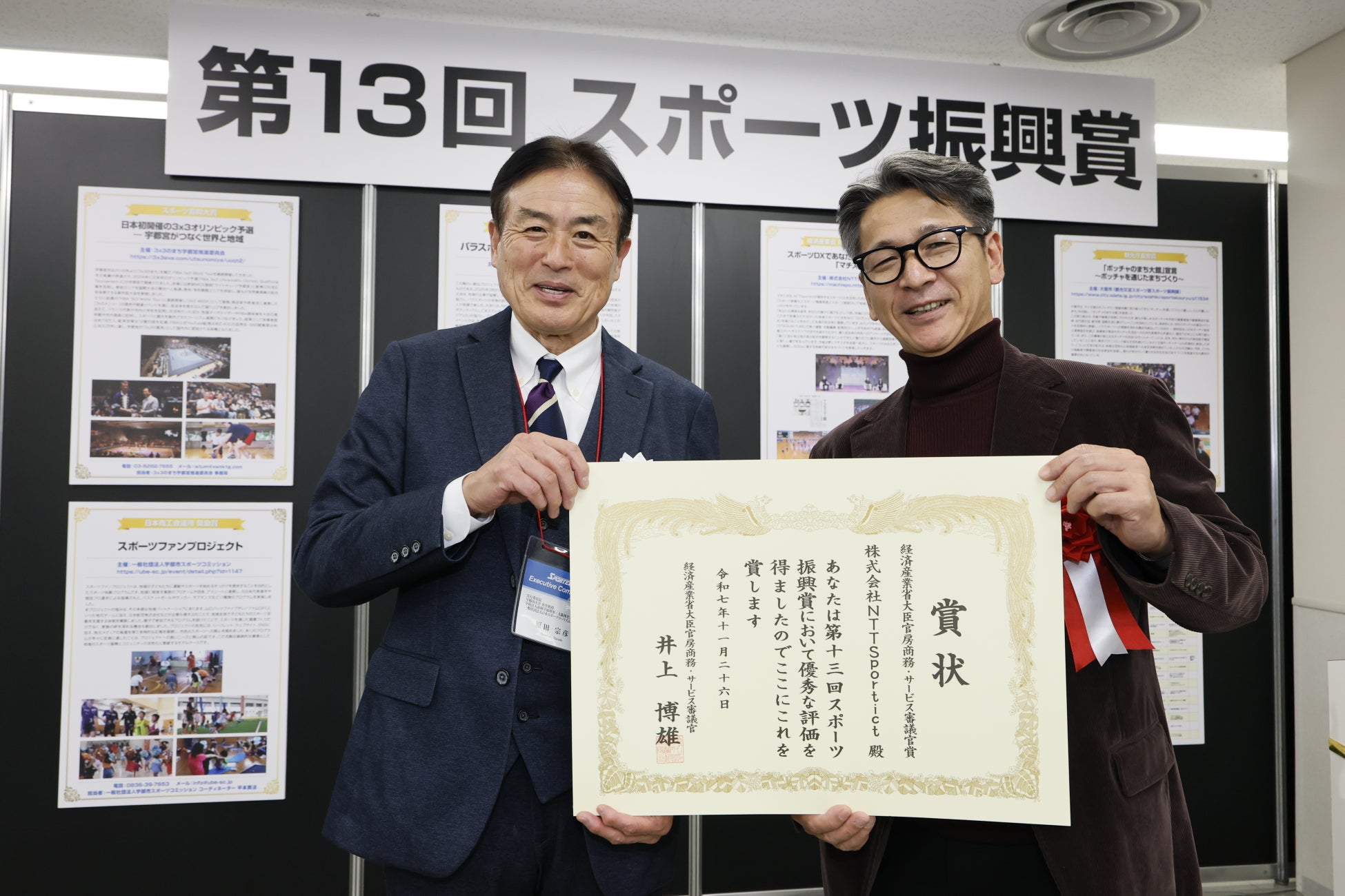 株式会社NTTSportict(本社:大阪市 代表取締役社長 中村正敏、以下 NTTSportict)は、2025年11月26日(水)に東京ビッグサイトにて開催された「第13回スポーツ振興賞」授賞式において、NTTSportictが提供している「スポーツDXを活用したまちづくり『マチスポ』」が「経済産業省 商務・サービス審議官賞」を受賞したことをご報告いたします。