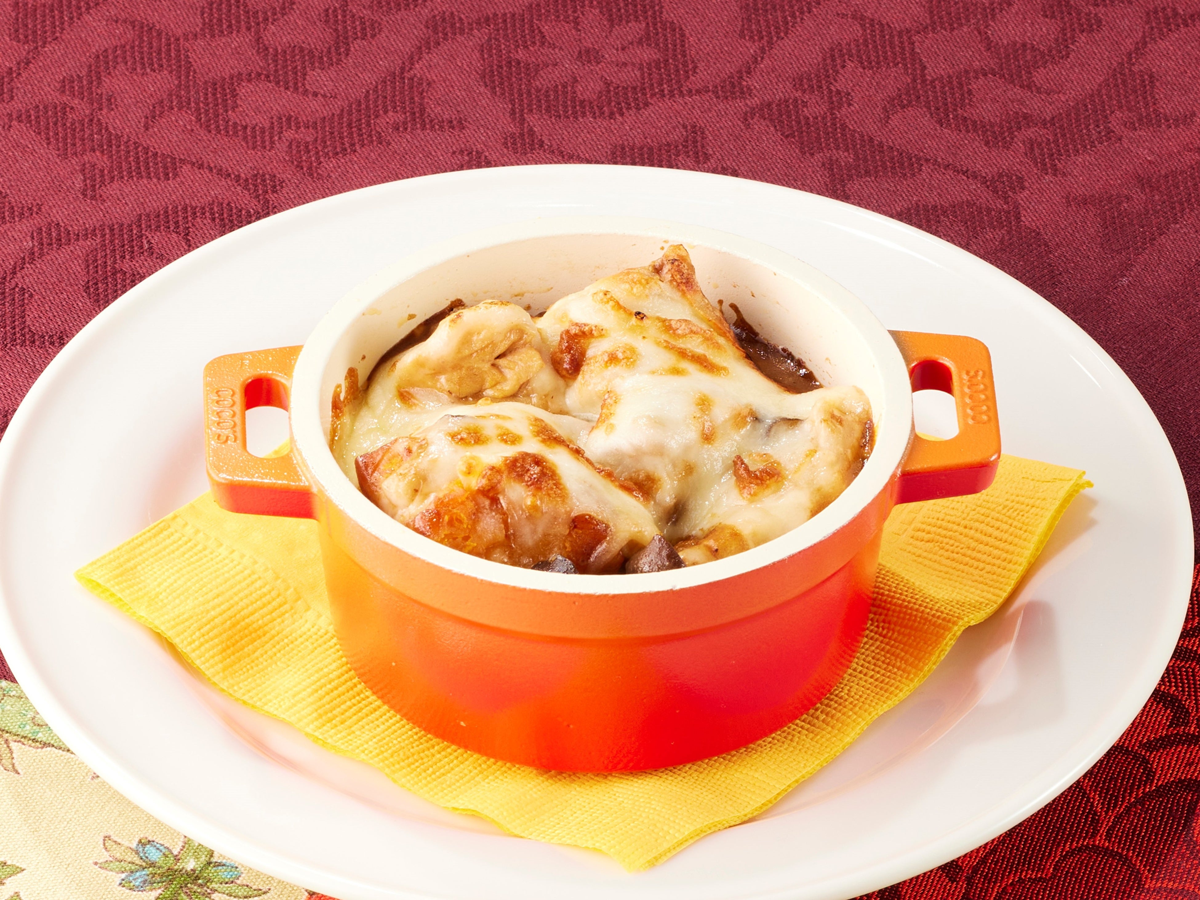 チキンやかぼちゃがごろごろ入ったミニグラタンです。ココス特製の香り高いデミグラスソースやこんがり焼き目の付いた濃厚なチーズに絡めてお召し上がりください。
