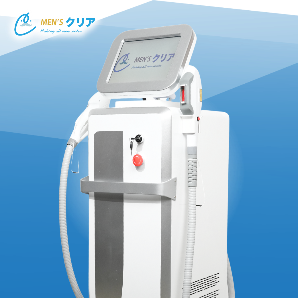 メンズクリアは、IPL(熱破壊式)×SHR(蓄熱式)のハイブリッド脱毛機を使用しています。照射面には光を効率的に通すクリスタル・サファイアを使用し、肌に接する部分をマイナス4度まで冷却しています。それにより脱毛照射時に発生する熱を緩和し、痛みを軽減しています。