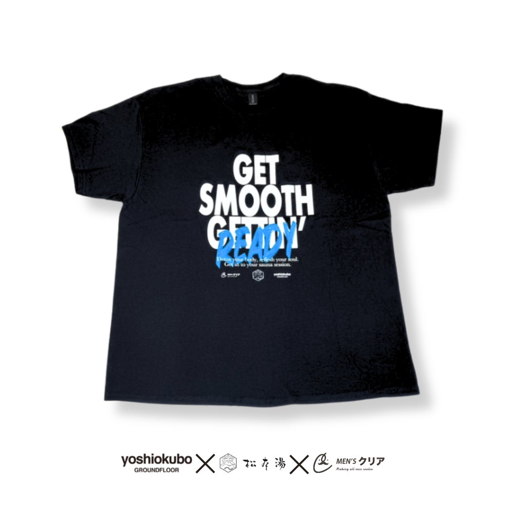 厚地のコットンボディに「肌を滑らかに、整う」を意味する「Get Smooth Gettin' Ready」のオリジナルプリントが施されている。