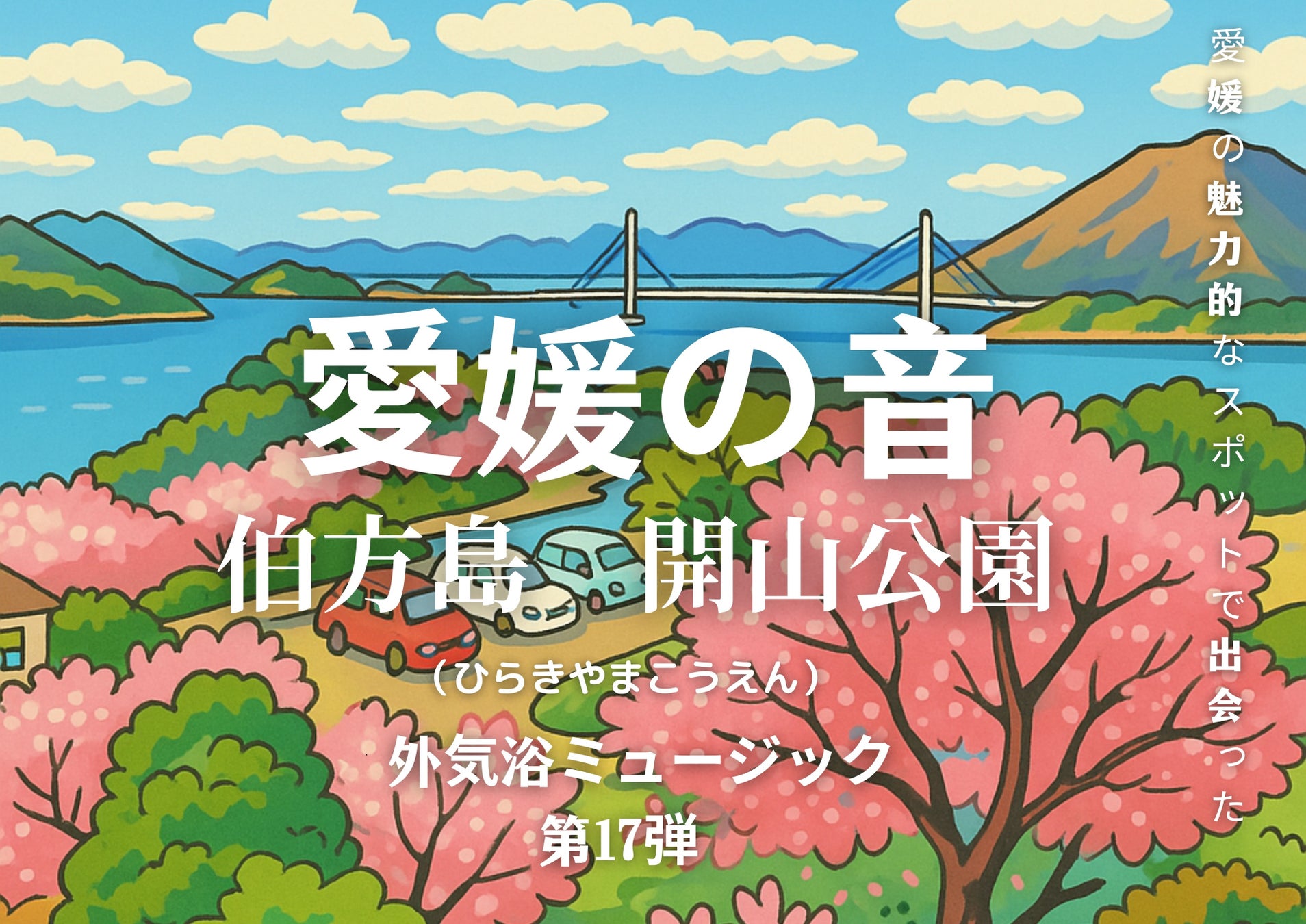 園内には展望台や遊歩道も整備されており、瀬戸内しまなみ海道を背景にした雄大な景色と、春のやさしい自然音が融合した本作は、心と体を整えるための“音の旅”としても最適です。