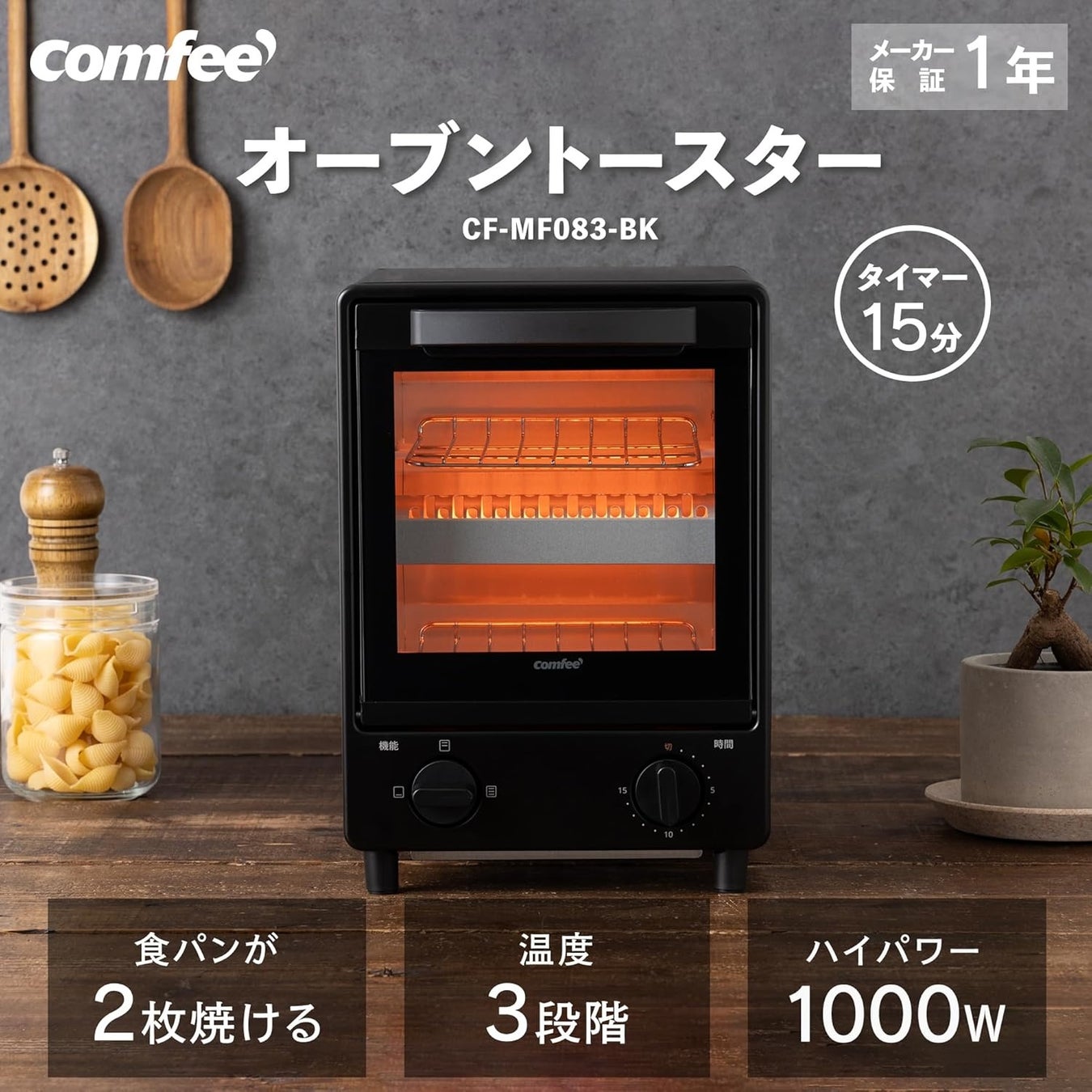 コンフィー(COMFEE') オーブン・トースター 2枚焼き タイマー15分調節 1000W CF-MD081-BK