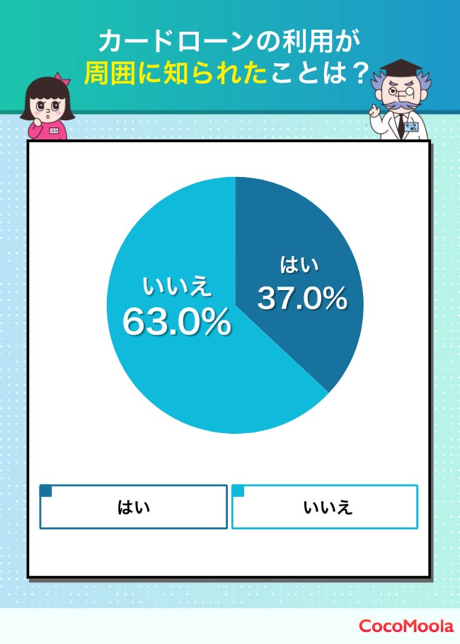 「カードローンの利用が周囲に知られたことはない」と答えた方は約63%。