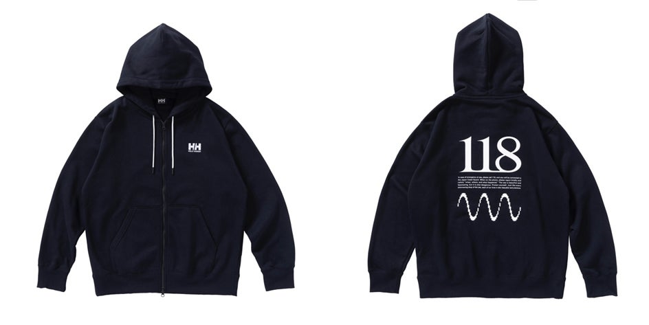 今回販売するアイテムのラインアップは、「118」をコアアイデアとしたロゴをデザインした防水ジャケット、長袖Tシャツ、フルジップパーカーといったアパレルラインおよびトートバッグで、全国のヘリーハンセン対象店舗※3で受注受付します。アイテムの受注販売は2024年9月6日(金)から2024年11月4日(月)までで、商品の引き渡しは10月以降を予定しております。