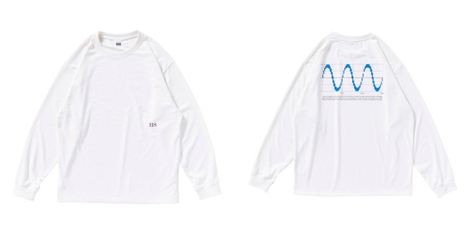 アウトドアアクティビティに活躍する長袖Tシャツ。海上でつながる電波の周波数帯を表したグラフのデザイン。オールシーズン活躍します。